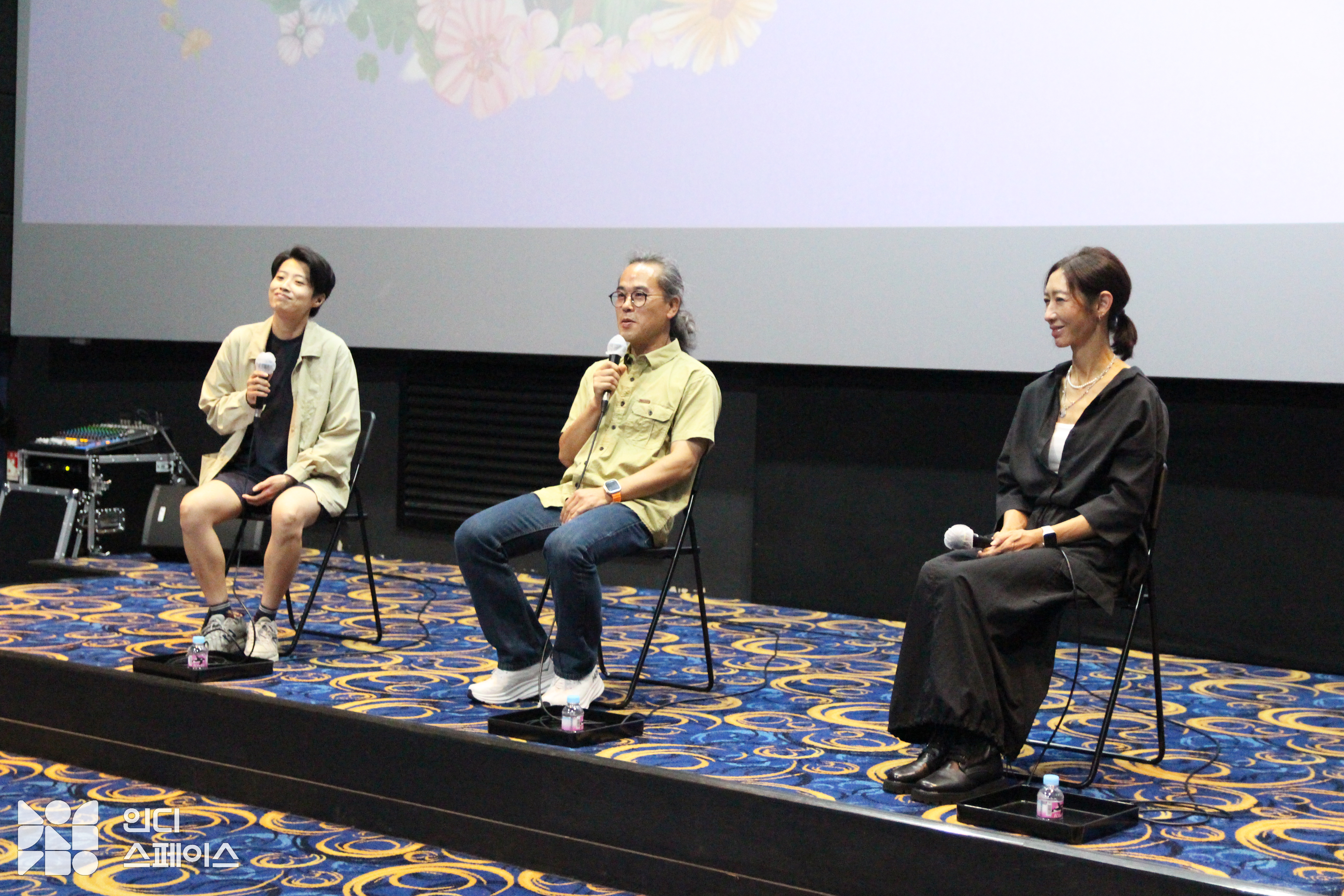 관객: 제가 말은 잘 못하는데요. 느낀 게 조금 있어서 말씀을 드려보자면 저는 원래 할머니 이야기에 쉽게 눈물을 흘리는 사람이라서 손수건을 가져왔거든요. 근데 생각보다 굉장히 많이 웃었고요. 대신 가족들 생각이 많이 났고요. 되게 벅찬 영화였어요. 독립영화나 예술영화를 보다 보면 상업영화랑 다르게 스토리라인이 뚜렷하지 않으니까 내가 영화를 어떻게 잘 따라갈 수 있을까 고민을 하면서 보게 되는데 이번에는 그런 생각 없이 그냥 쭉 따라가면서 봤던 것 같아요. 그래서 너무 좋고요. 전에 인디스페이스에서 GV를 했을 때는 모더레이터님이랑 감독님이랑 말씀을 많이 하셔서 그냥 보는 입장이었다면 오늘은 아예 관객과 대화하는 포지션이어서 ‘오늘은 말할 수 있겠다’고 생각했습니다. 그래서 정말 귀한 시간이랑 귀한 발걸음 해주셔서 너무 감사하다는 말씀드리고 싶었습니다.