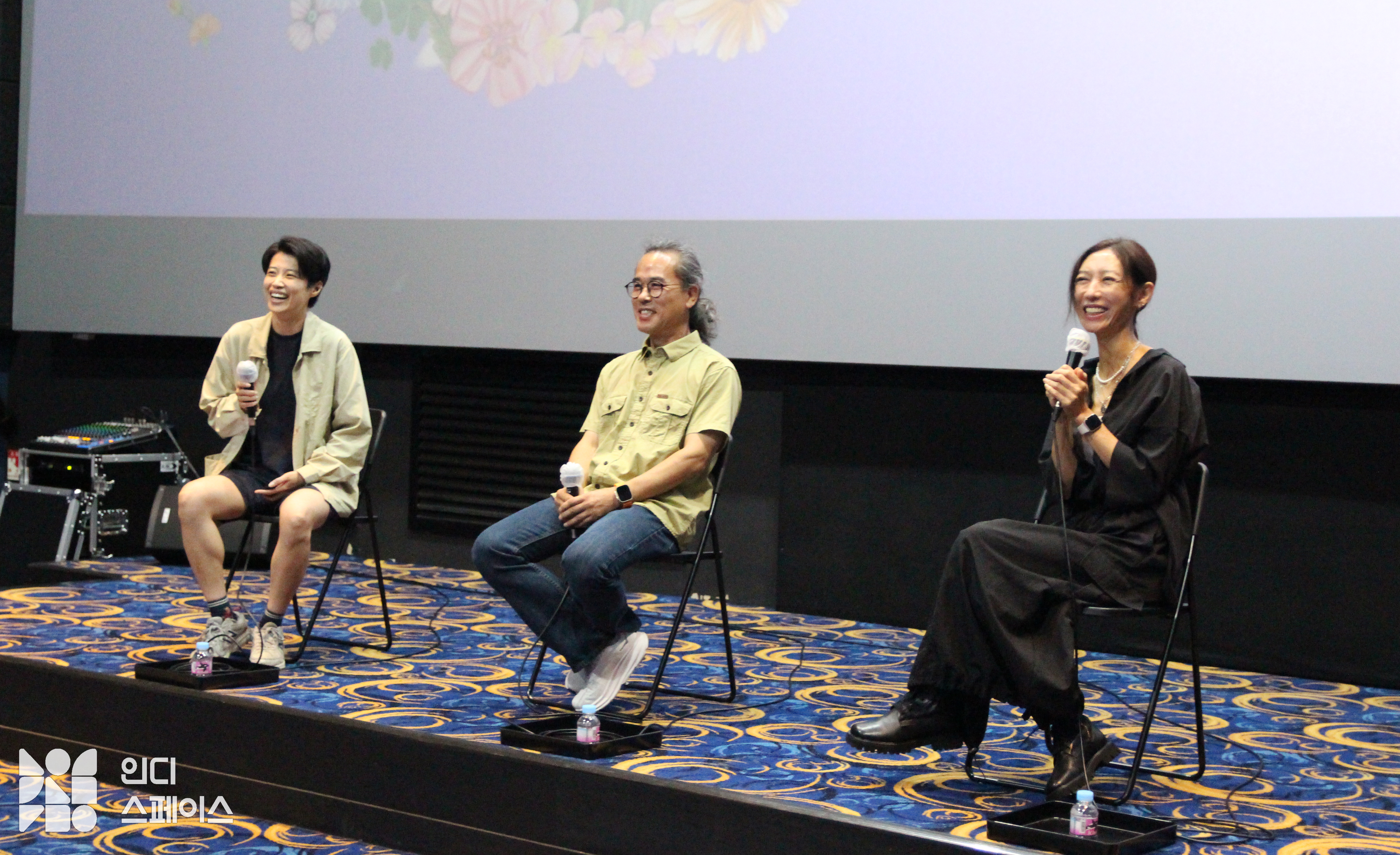 정 프로그래머(이하 정): 안녕하세요? 영화 재밌게 보셨나요? 저도 같이 영화를 보았는데요. 굉장히 재밌게 영화를 보시는 것 같아서 역시 영화를 보는 맛은 혼자 보는 게 아니라 이렇게 같이 보는 거구나 느끼는 시간이었습니다. 사실 같이 보는 것도 좋지만 그보다 더 좋은 건 영화 마치고 같이 이야기 나누는 거겠죠. 좋았던 점, 궁금했던 점 같이 나누면 참 좋을 텐데요. 오늘 제 옆에 계신 감독님과 게스트님과 함께 약 1시간 동안 우리 관객 여러분과 GV를 진행하고자 합니다. 오늘 GV의 진행을 맡은 저는 여성인권영화제 프로그래머이자 한국여성의전화 공동사무처장 정이라고 합니다. 감독님과 게스트님 자기 소개 부탁드립니다.