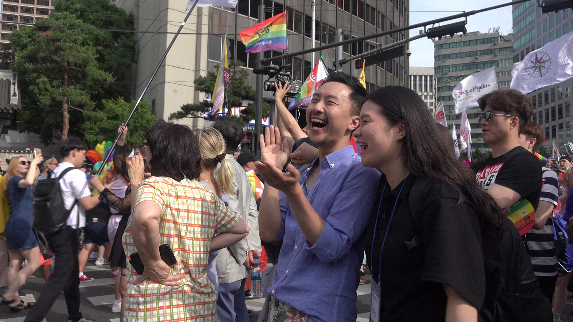저희가 작년에 서울 퀴어문화축제에 홍보를 하러 갔었는데 그 때 프리허그도 해주시고, 같이 사진도 찍었어요. 기억이 나실지 모르겠지만. 그래서 어떻게 보면 두 분이 〈퀴어 마이 프렌즈〉의 엄청난 엘라이가 되어주신 게 아닌가 싶습니다. 저희에게 힘든 순간에 너무 좋은 기억으로 남아 있습니다.