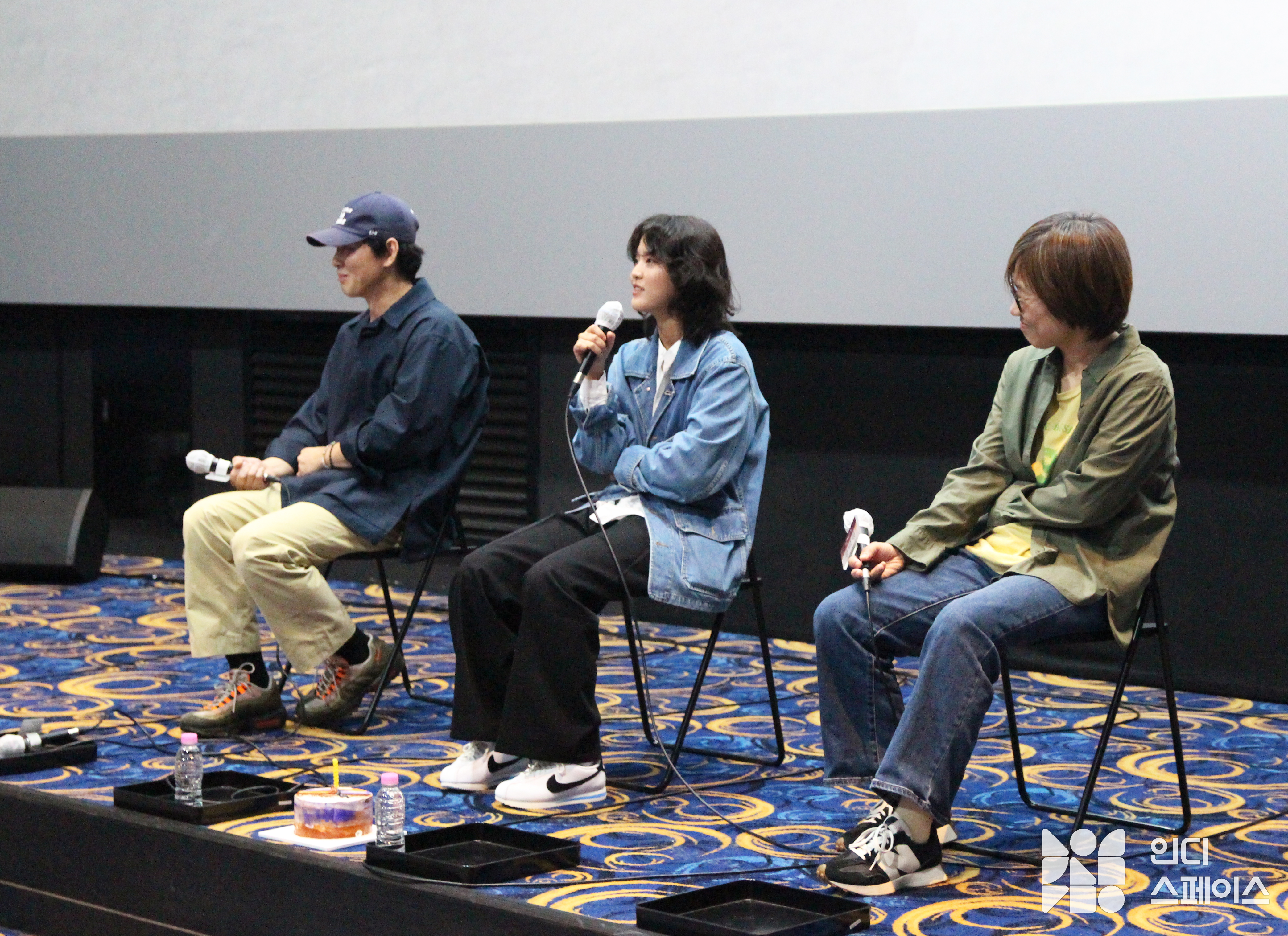 정성일: 오늘 좋은 답변을 들려주신 김미영 감독님, 이연 배우님, 박종환 배우님께 감사드리고, 긴 시간 이 자리를 지켜주신 여러분에게도 감사합니다. 응원의 뜻을 담은 박수로 이 자리를 마무리하겠습니다.