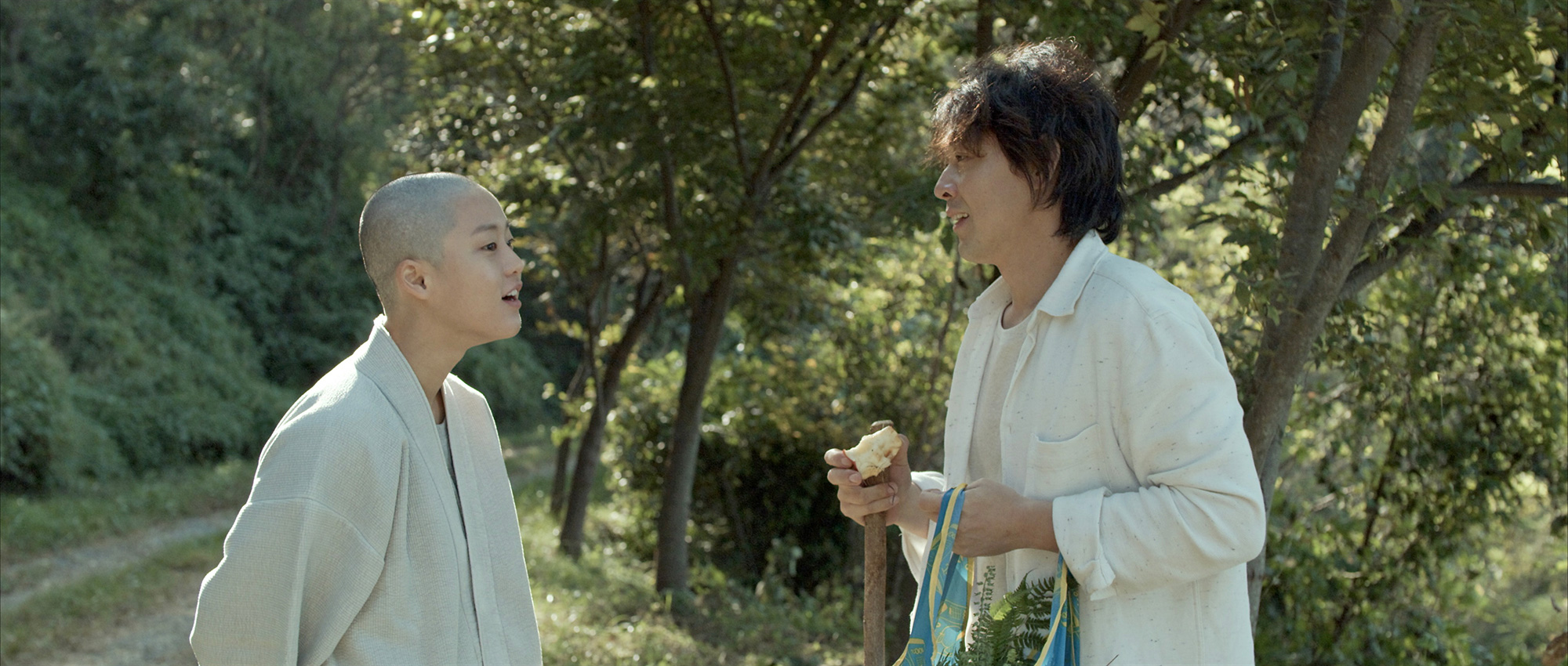 정성일: 시간만 있었다면 숏 바이 숏으로 영화에 대해 질문하고 싶지만, 두 가지 질문만 던지고 마무리하겠습니다. 왜 아무도 이 장면에 대한 질문이 없는지 조금 궁금합니다. 멧돼지가 나온다는 이야기를 듣고 윤철이 영지를 찾아 달려갑니다. 그러다 어미 멧돼지와 마주칩니다. 놀라서 자빠졌는데 지나/도맹이 나타납니다. 둘은 함께 산길을 내려옵니다. 암자에 들어온 이후 유일하게 여기서 윤철을 아빠라고 부릅니다. 그러고는 굉장히 이상한 대화를 나눕니다. 윤철이 대학교에 가라고 말하자, 지나가 “생각해 봐. 진짜 뭐가 더 나은지”라고 답합니다. 윤철이 모르겠다고 답하자, 지나가 “알 수 있어. 이미 죽었다고 생각해 봐”. 윤철이 “안 죽어. 안 죽었잖아”, 그러고 지나가 대답합니다. “한 번만 해봐. 나도 해봤어” 그러자 윤철이 “행자님, 같이 가죠”라고 말하는 대신, “지나야, 같이 가자”라고 말합니다. 그러고 윤철의 보이스오버 내레이션이 나옵니다. 집 나간 엄마를 떠올립니다. 그런 다음, 이 영화의 유일한 드론 촬영이 나옵니다. 하늘에서 누군가 내려다보는 것 같습니다. 내려다볼 사람은 딱 한 명밖에 없죠. 윤철의 엄마입니다. 이 장면이 결정적인 장면 같은데, 저에게는 쉽게 이해가 안 됐습니다. 이 장면에 대해 조금 더 설명 듣고 싶습니다.