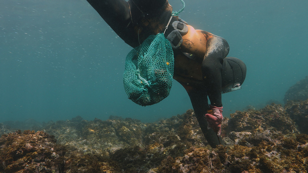 그 장면이 바로 현순직 할머니가 바다에서 보말을 채집할 때 채지애 해녀가 올라가는 장면이에요. 바다 안에서 찍어야 되는 상황이기 때문에 들어갈 수밖에 없었어요. 그런데 지금 생각해도 잘했다고 생각합니다.