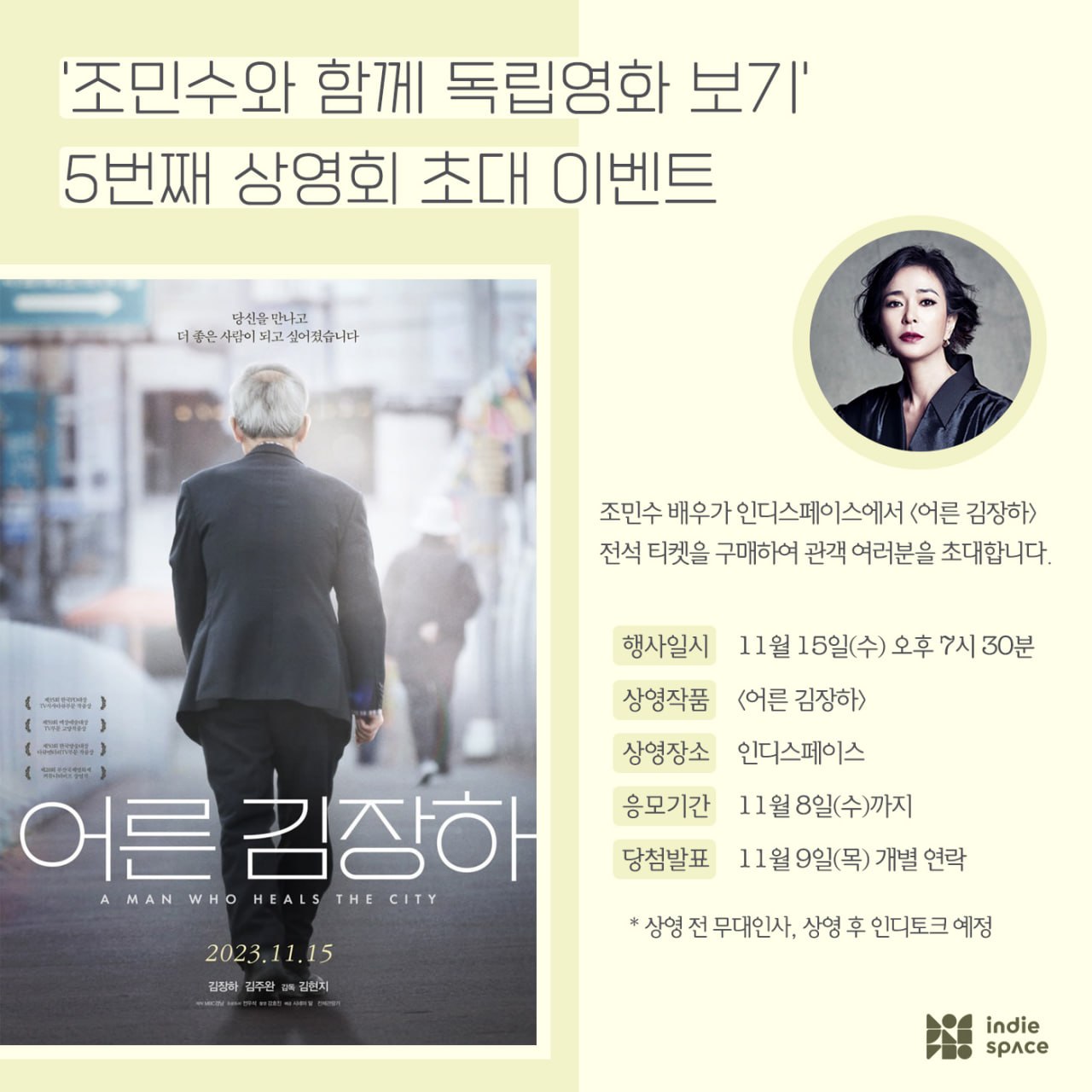 | <느티나무 아래> 상영일정·인디토크 / 영화예매 _12월 11일 종영 (0) | 2023.11.02 |