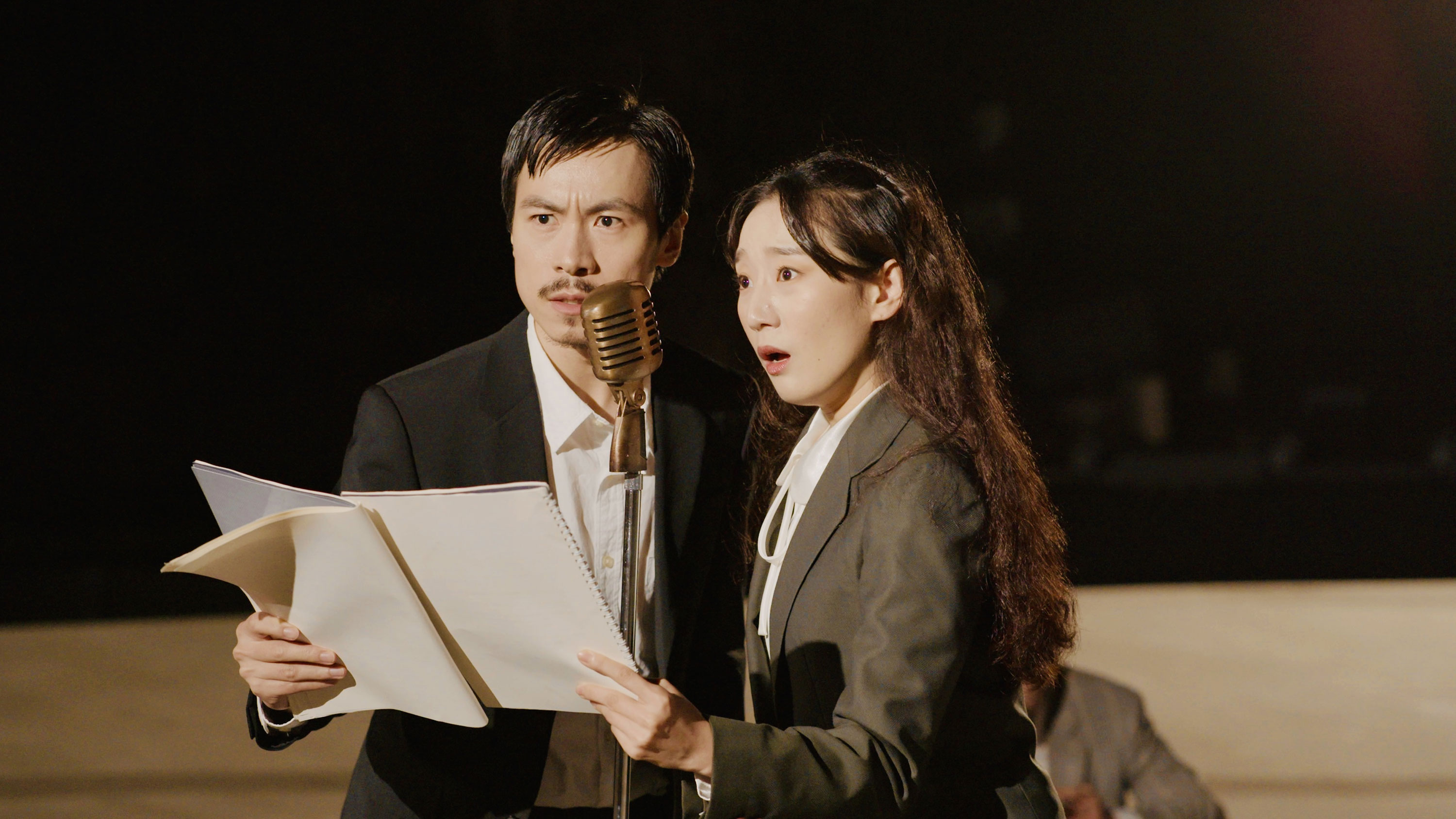 백재호: 공연을 영상화하는 것, 그러니까 준비하던 낭독극을 그대로 촬영하는 것과 영화로 반드는 것 사이에 어떻게 차이를 둘까의 고민이었는데요. 그냥 단순하게 기록하는 거는 의미가 없었고 영화만이 할 수 있는 것은 무엇일까 고민을 많이 했던 것 같아요. 흑백을 넣는다거나 사운드 효과를 더 준다거나. 실제로 공연 때는 할 수 없는 것들이잖아요. 저도 연극으로 예술을 시작한 사람이지만 연극을 한번 이겨보자는 생각을 했었던 것 같아요. 영상화를 할 때는 공연의 라이브성을 절대로 이길 수가 없잖아요. 그래서 어떻게 하면 이거를 타개할 수 있을까 이런 고민을 했었던 것 같고요. 흑백 장면 같은 경우에는 보정 기사님도 그렇고 옛날 영화처럼 더 효과를 주자고 하셨던 분들도 있어요. 그런데 말씀해 주셨듯이 노필 감독의 시선이고 그거를 관객이 공감해 주시기를 바랐기 때문에. 흑백 장면들이 당시에는 되게 좋았던, 지금으로 치면 4K 같은 거잖아요. 그래서 굳이 열화를 시킬 필요가 없다고 생각했기 때문에 지금 방법을 사용했던 것 같습니다.