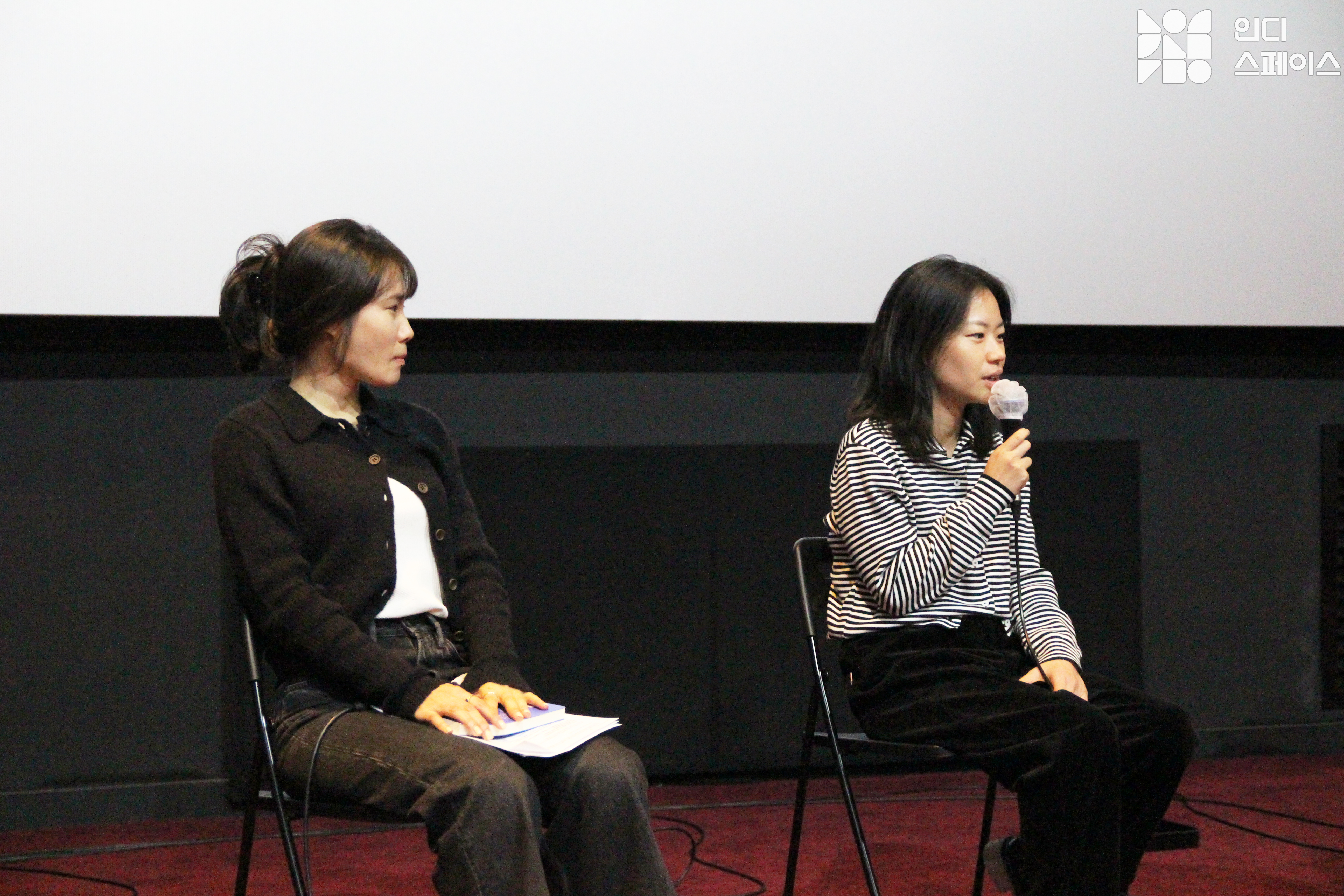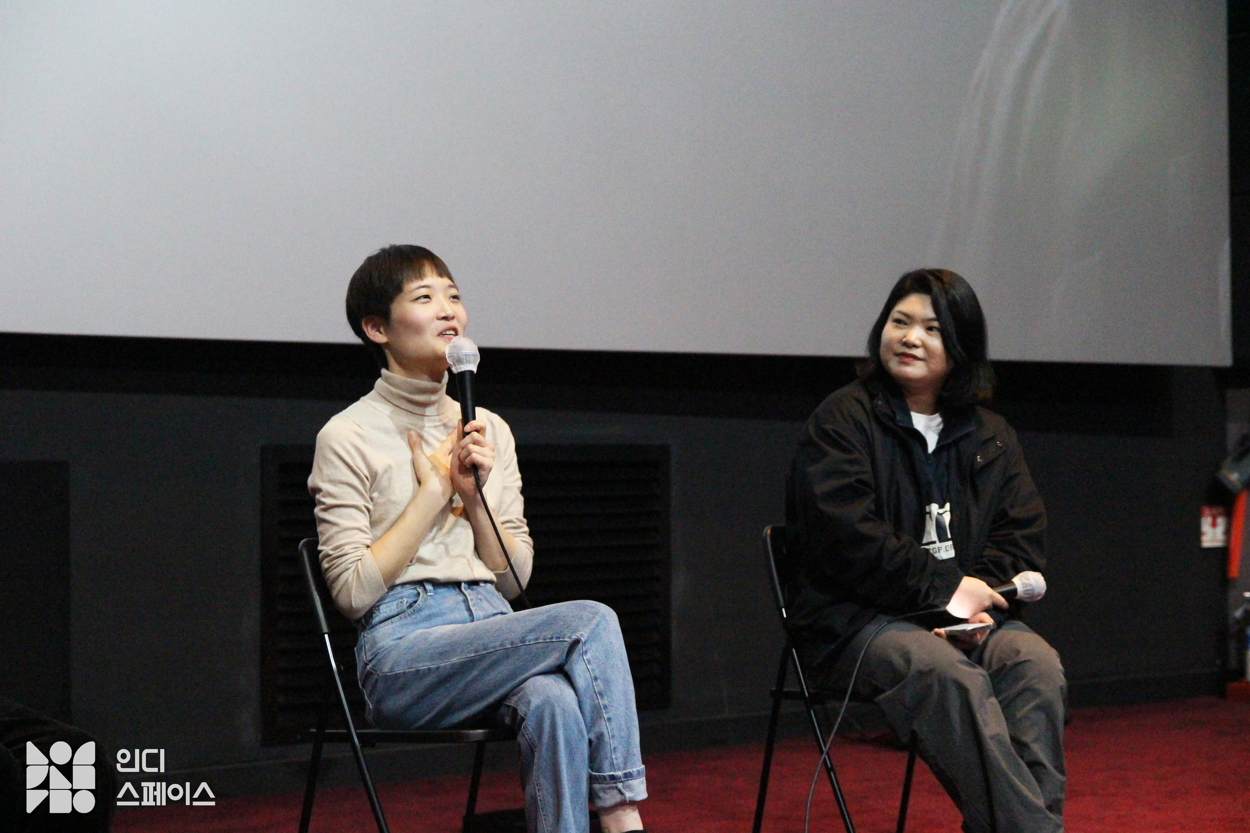김보람: 저도 삼 주차 되니까 정신없고 지쳐있는데 오늘이 저한테 특별한 이유는 영화에 굉장히 중요한 역할로 참여해 주신 김해원 음악 감독님과 최미혜 애니메이션 감독님께서 와주셨어요. 그래서 너무 소개를 드리고 싶습니다. (일동 박수) 영화를 완성하고 상영될 때 제가 가진 역량보다 훨씬 더 좋은 분들이 함께해 주셔서 수월하게 작업할 수 있었어요. 개봉하고 시간이 좀 지나니까 더 감사한 마음이 들어요.