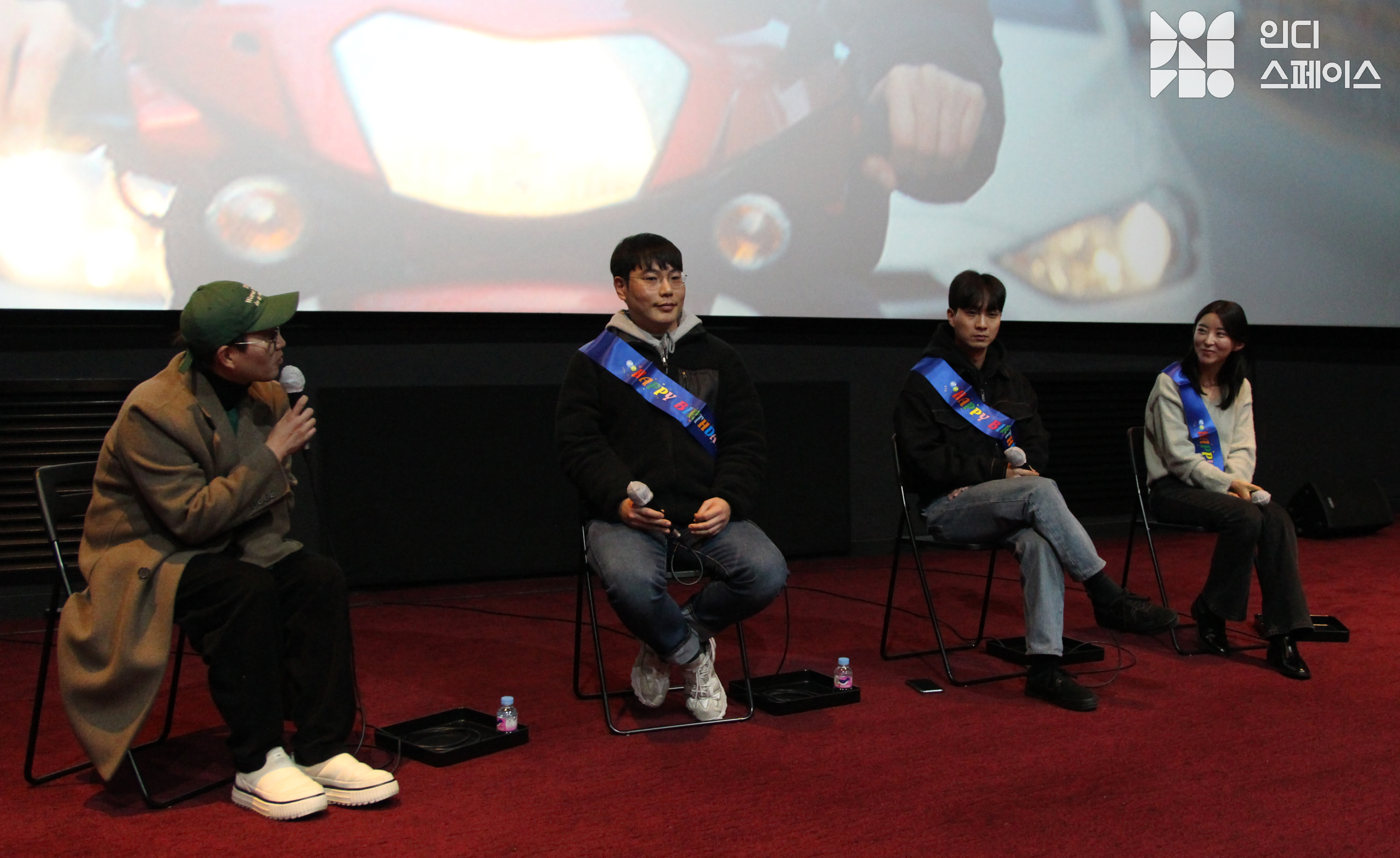 독립 영화를 챙겨보시는 분들은 이렇게 보석같은 영화를 발견할 때마다 눈이 아플 정도로 기쁘실 거예요. 특히 〈그 겨울, 나는〉은 더 특별하게 느껴졌던 이유는 너무 모든 것의 순도가 높았었어요. 가난의 순도, 사랑의 순도, 아픔의 순도까지 높아서 베일 것 같은 심정들이 드는 순간들이 많았거든요. 그만큼 이 영화를 만드신 분들이 정말 사력을 다해서 만드셨겠다고 오랜만에 다시 생각했습니다. 오늘 스크린 통해서 다시 마주하신 분들도 그런 순간을 많이 목격하셨을 것 같고요. 일단 세 분 다 작년 개봉 때보다 얼굴이 훨씬 좋아지셔가지고 마음이 너무 좋아요. 우선 감독님한테 여쭤보고 싶은 게 사랑을 많이 받기도 하셨고 첫 장편 데뷔작인 만큼 개봉일이 꽤 큰 의미를 갖잖아요. 감독님께서는 지난 1년간 〈그 겨울, 나는〉이 어떤 힘이 되었었는지 여쭤보고 싶습니다.