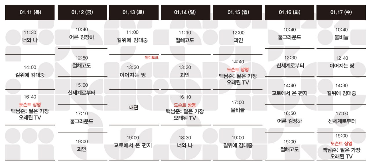 | 01.18-01.24 상영시간표 (0) | 2024.01.12 |