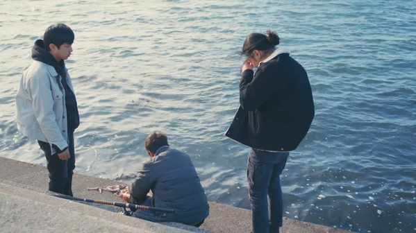 김금순: 변중희 배우님과 〈태어나길 잘했어〉(2020, 최진영)를 비롯해서 함께 연기한 기억이 많다. 매번 큰언니 같다고 생각했고 그래서 호흡 맞추기 편했다. 다들 고기를 구워 먹다 취하는 장면에서 금순의 대사를 들으며 시원했다. 윤화가 태민의 집 앞에 갈비를 놓고 가는 장면에서 임정민 배우의 표정이 기억에 남는다. 전화 너머로 들리는 그의 침묵도 그렇다. 둘 사이의 친밀도가 어느 정도인지 잘 설명해 주는 장면 같아 좋아한다. 도정환 배우가 방파제에 올라가기 위해 몇 번씩 미끄러지는 장면이 있지 않나. 그 장면 참 귀여우면서도 동시에 짠하다. 이전에 말씀하신 것처럼 모든 배우분들과 호흡을 나눴다. 그래서인지 인물들에게 주어진 개별 장면들 모두 소중하고 기억에 남아있다.
