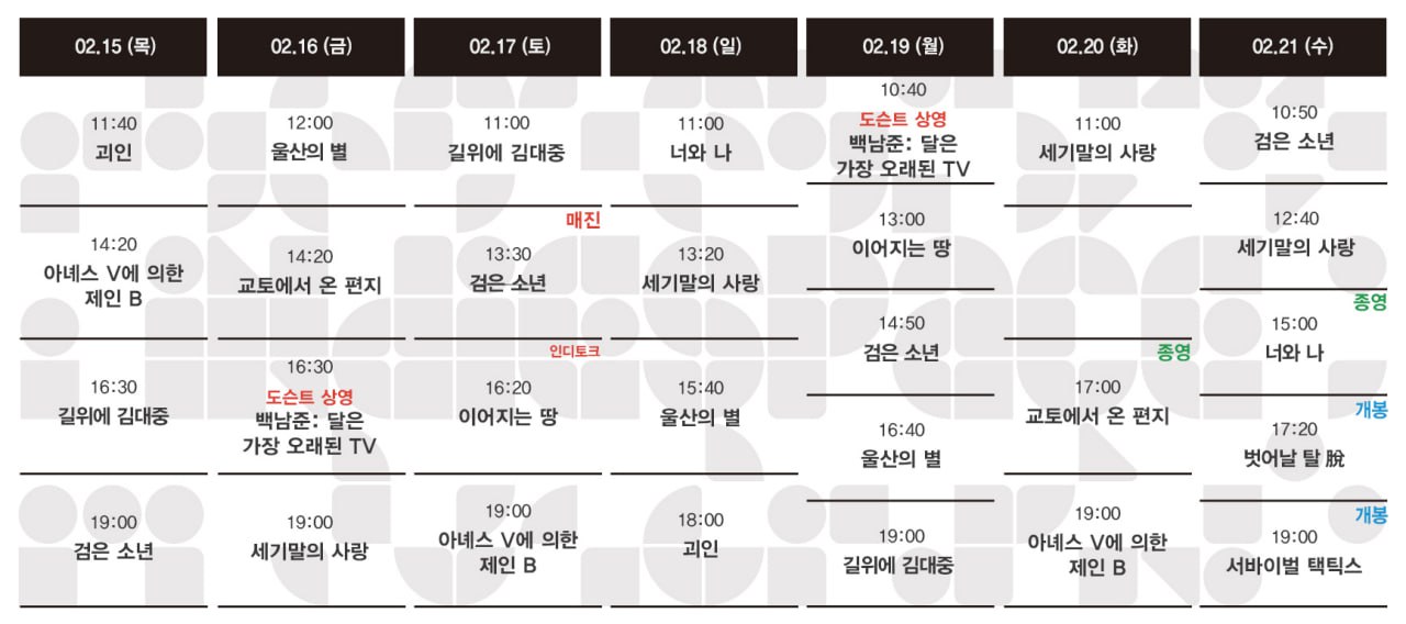 | 02.22-02.28 상영시간표 (0) | 2024.02.21 |