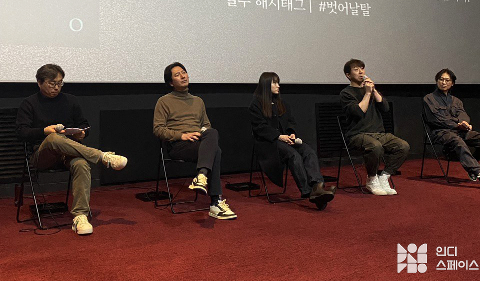 정한석 평론가(이후 정한석): 영화 흥미롭게 보셨습니까? GV 시작 전 박우재 연주자님께서 들려주신 거문고 연주 다들 어떻게 들으셨습니까? (*영화 종료 후 박우재 연주자의 〈벗어날 탈 脫〉엔딩곡 등 거문고 연주가 진행되었다.) 개인적인 경험으로 거문고 연주를 이렇게 가까이서 듣고 보는 것이 처음 있는 일인데 굉장히 울림이 컸습니다. 본격적으로 감독님과 배우분들, 그리고 거문고 연주자 이자 음악 감독님까지 모셔서 이야기들을 좀 나눠보도록 하겠습니다. 꽤나 유쾌한 분들이셔서 영화 보시면서 떠올렸던 궁금한 점들을 많이 물어보시면 정답게 많이 답변해 주시리라 생각합니다. 감독님부터 차례대로 인사부탁드립니다.