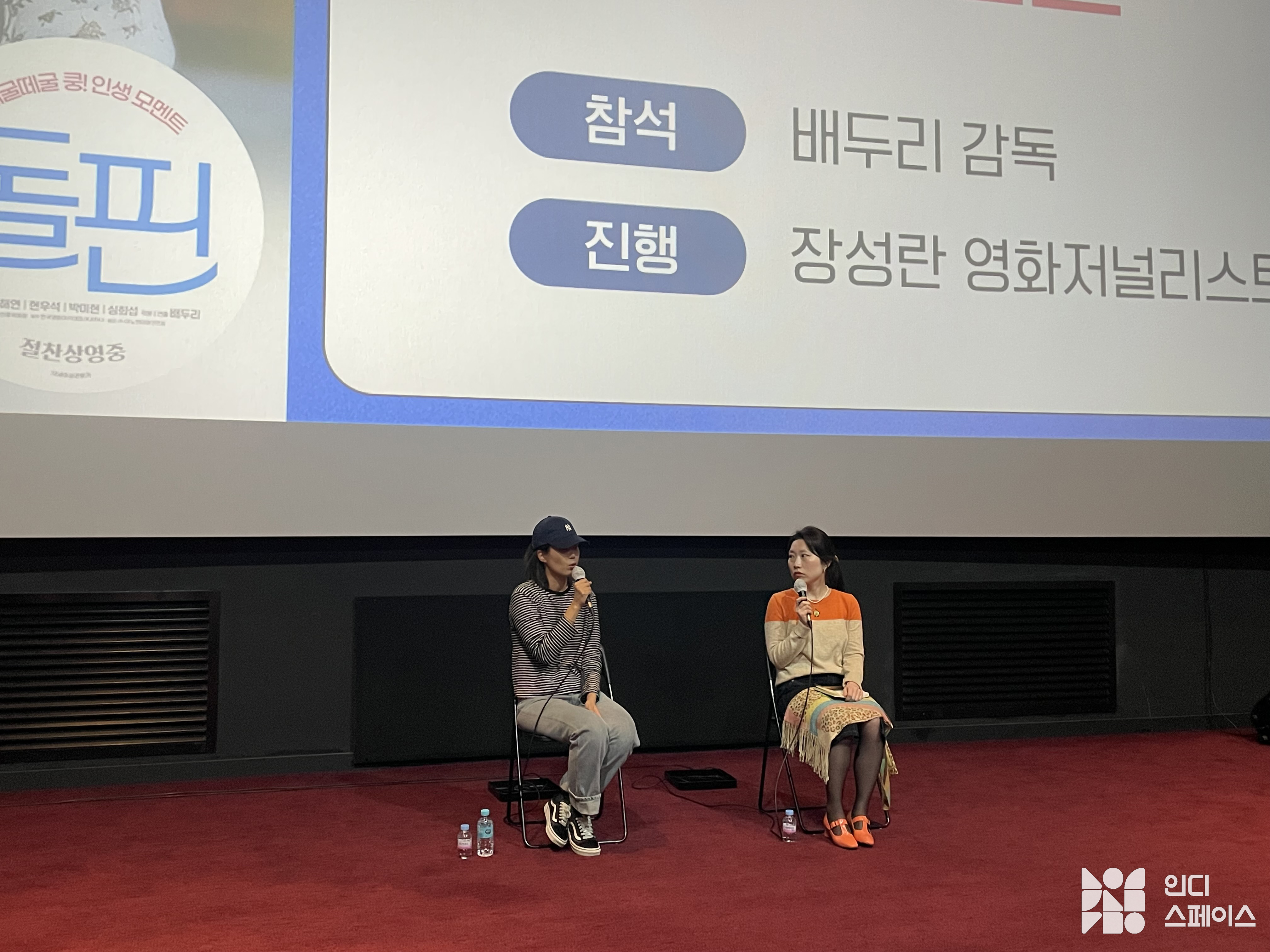 장성란 영화저널리스트(이하 장성란): 안녕하세요. 오늘 〈돌핀〉 영화에 대해 여러 가지 것들을 찾아 가면서 보셨을 것 같은데요. 이 영화를 쓰고 연출해 주신 배두리 감독님을 모셨습니다. 큰 박수로 맞이해주세요.