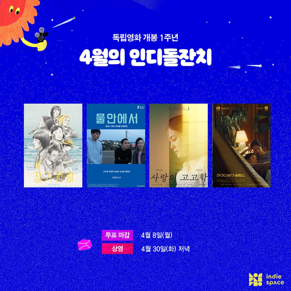 | [인디돌잔치] 2024년 5월 상영작을 선정해주세요 (0) | 2024.04.30 |