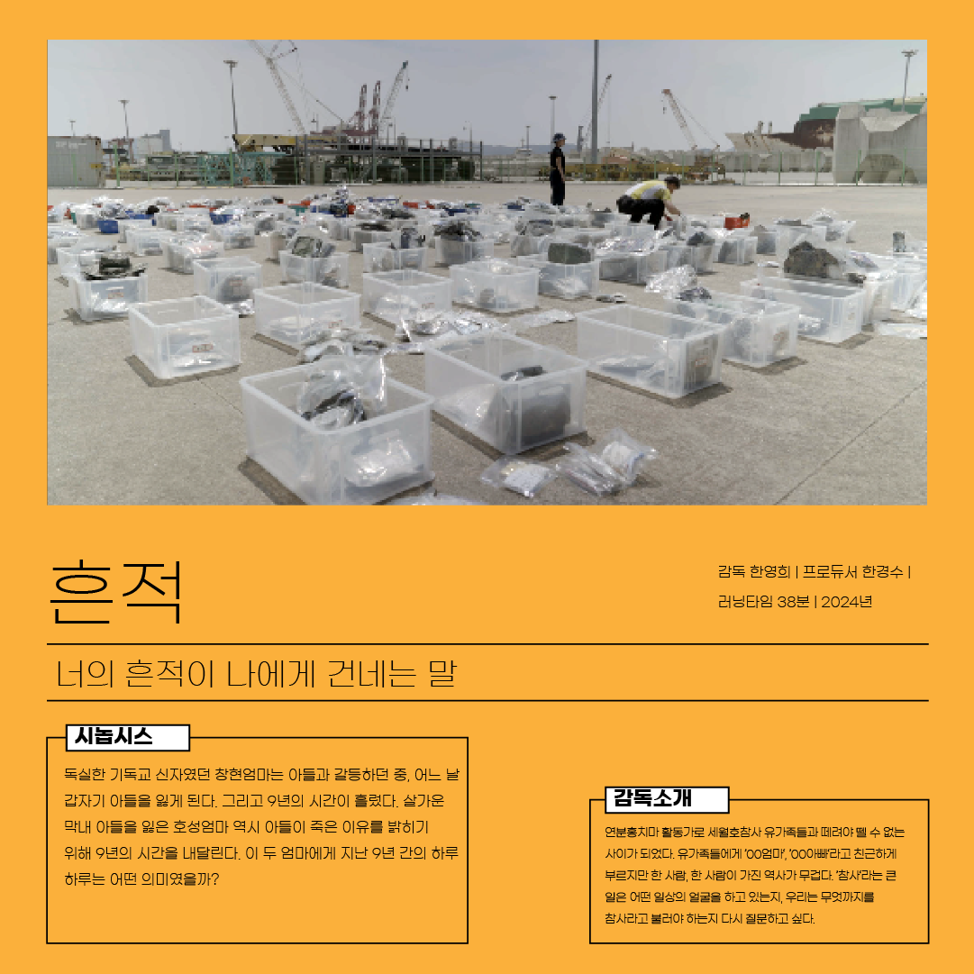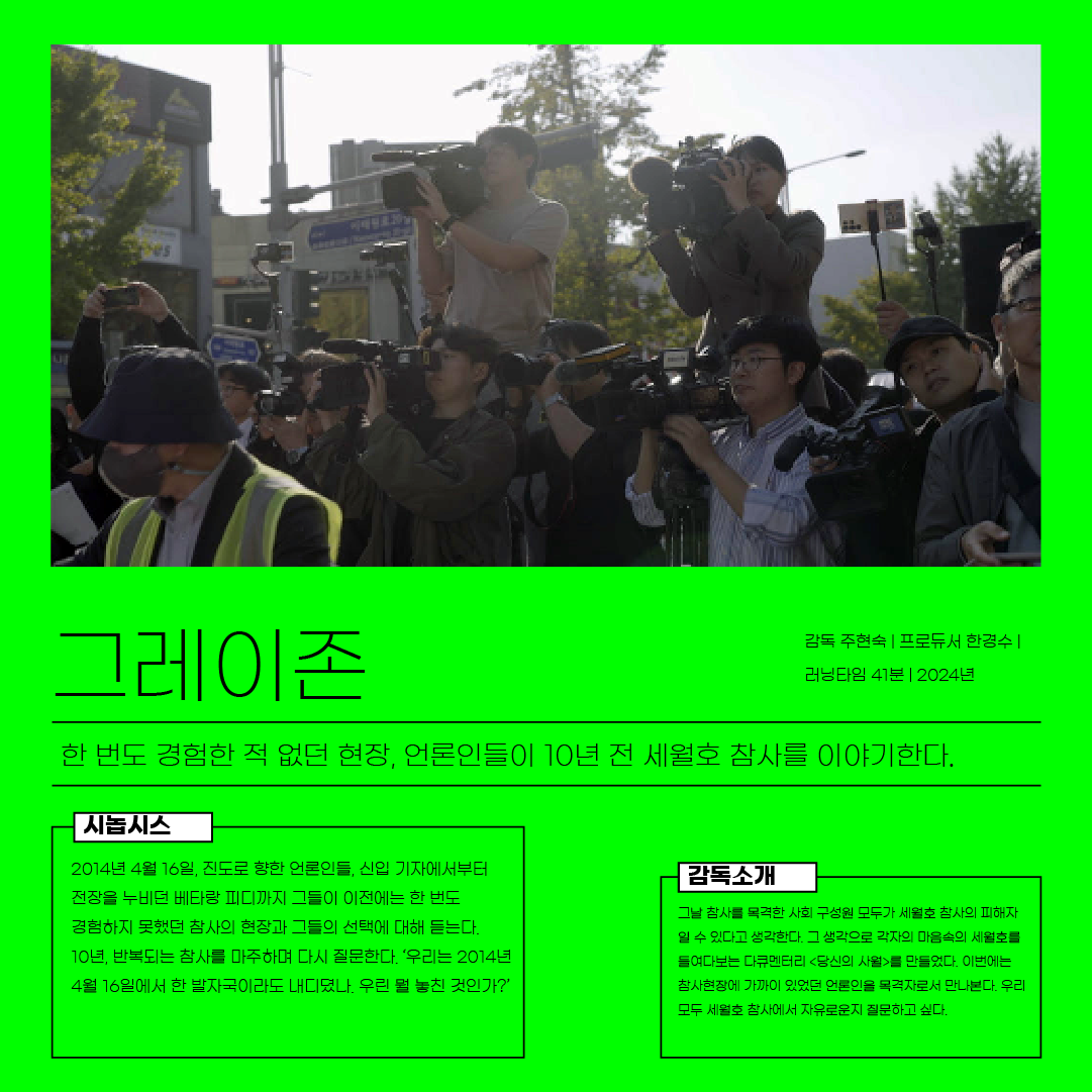 2014년 4월 16일, 돌아오지 못한 아이들을 기다리는 부모들이 있습니다. 아이들이 겪은 그날의 진실을 알아야 했기에 가족들과 시민들은 한마음으로 외쳤습니다. 작은 희망도 잠시, 결국 그 무엇도 해결되지 않았습니다. 10년의 시간, 3654일, 5000여 개의 영상들이 쌓이는 긴 세월 동안 또 다른 비극적인 참사들이 이어졌고 안전한 사회를 위한 우리의 바람은 더욱 간절해졌습니다. 세월호 참사 이전과 이후는 달라져야 하기에 우리는 다시 한번 목소리를 내보려 합니다.