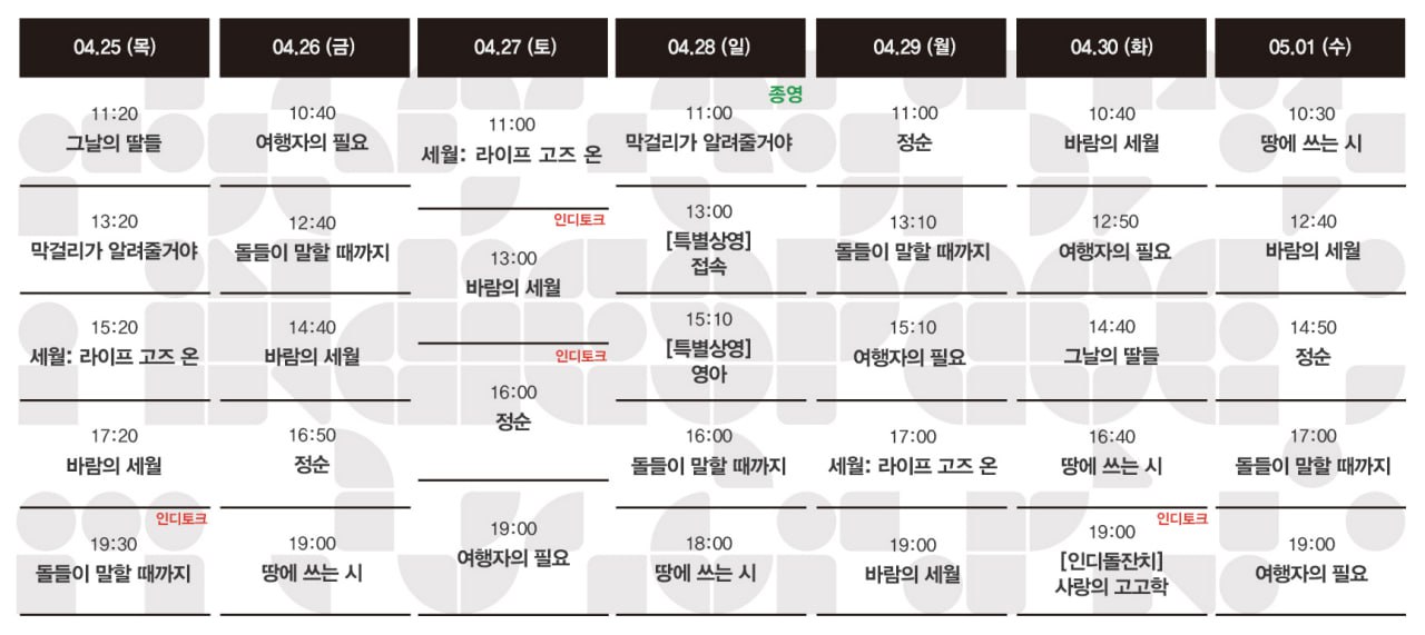 | 04.11-04.17 상영시간표 (0) | 2024.04.05 |