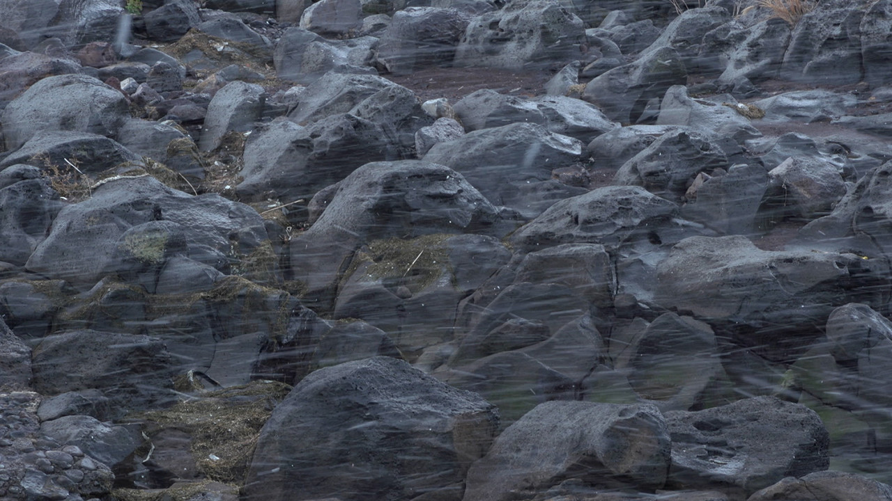 영화는 할머니들의 증언과 제주의 자연을 교차해서 보여주며 우리를 그 당시 제주로 데려다 놓는다. 카메라는 제주의 고요한 바다, 숲, 돌담, 오름, 설산을 가만히 비춘다. 가끔 증언과 동일한 장소를 제시하기도 한다. 이 과정에서 자연은 오랜 시간 굳건히 제 자리를 지키며 당시 제주의 잔혹했던 시간을 증명하는 침묵의 목격자가 된다. 동시에, 그 광경을 함께 마주하는 우리도 그날의 또 다른 목격자로서 존재하게 한다. 그리고 그 안에는 제주도민의 모습처럼 각양각색의 돌들이 있다. 우리는 돌들에서 그들 각자의 모습을 겹쳐 본다.