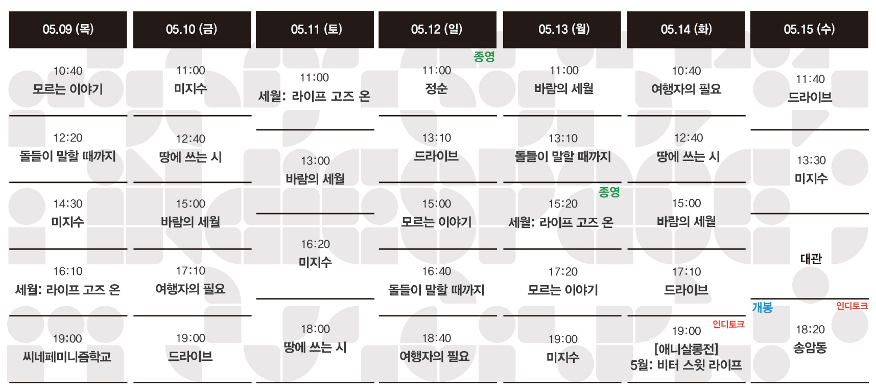 | 05.16-05.22 상영시간표 (0) | 2024.05.10 |