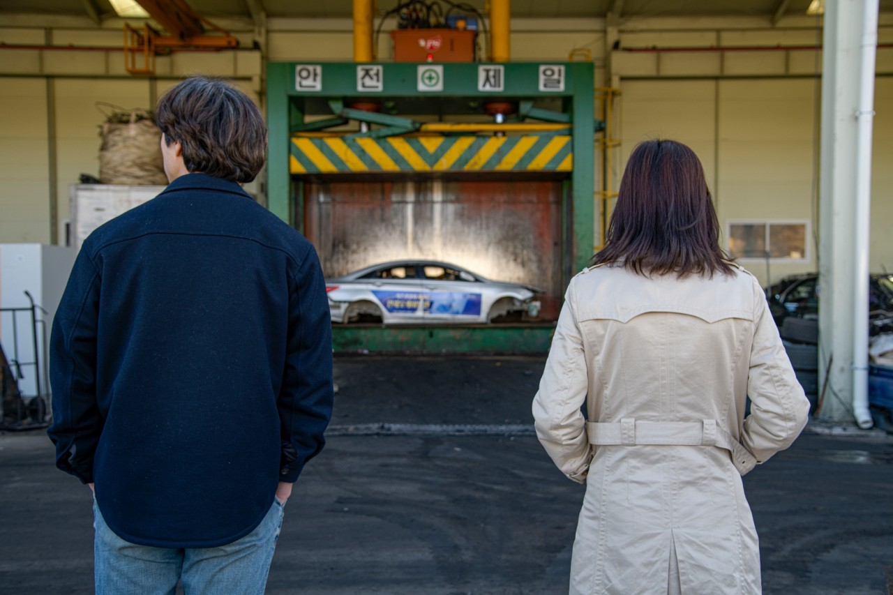 그리고 처음에 차가 지나가는 장면을 제가 길게 보여준 이유는 마지막 장면 때문이거든요. 마지막에 차가 다시 그 공간에서 빠져나오는 그 장면을 찍기 위해서는 오프닝에 차가 어디론가 진입하는 장면이 필요하다, 낮에 진입하는 장면이 필요하고 밤에 나오는 장면이 필요하다고 생각했어요. 그런데 이게 연출자나 감독마다 생각이 다를 수는 있는데, 저는 영화에 물리적인 시간이 필요하다고 생각해요. 마지막 폐차 장면도 폐차 장면을 그냥 안 보이게 하고 대사로만 처리할 수도 있는데, 저는 이 세 가지 에피소드에서 각각의 인물들이 거쳐 왔던 시간과 기억, 또 차라는 물성이 세상에서 사라지는 순간이 누군가는 길게 느껴지고 누군가는 지루할 수도 있겠지만, 꼭 필요하다고 여겼어요. 이렇게 세세한 부분들을 조목조목 보여주려고 했었고요. 하나 더 말씀드리면, 저희가 개봉을 4월 24일에 했는데 저도 개봉 날에 처음으로 큰 스크린으로 영화를 봤어요. 그런데 저도 모르게 큰 스크린으로 폐차 장면을 보고 있는데 제가 만든 영화이긴 하지만, 참 감독이 잔인하다는 생각이 들더라고요. ‘이거를 굳이 이렇게까지 헤집으면서 뜯고 때리고 부수고 폐차하는 걸 보여줬어야 했나’라고 생각했을 때, 저도 보면서 약간의 안도감이 들다 보니까, 내가 그런 기분을 느꼈다면 다른 분들도 아마 ‘차에 대한 각각의 기억들, 상황들을 이 장면들을 보면서 상기할 수 있지 않을까’, ‘나의 의도가 전달될 수 있지 않을까’라는 생각이 저도 모르게 들었어요.그리고 제가 생각할 때 감독들이 연기에 대해서 그렇게 잘 안다고 생각하지 않아요. 자기가 썼던 시나리오, 배우의 캐릭터, 그 장면의 목적 이런 것들의 의도를 배우들한테 최대한 전달하면, 배우들이 그 부분을 잘해주신다면 감사한 거고 안 됐을 경우에는 제가 의도를 설명하고 같이 고민하고 토론해서 그 장면을 같이 만들어 나간다고 생각해서 저는 최대한 제 의도를 전달했고요. 배우분들께서 정말 연기를 잘해 주셨다고 생각합니다.