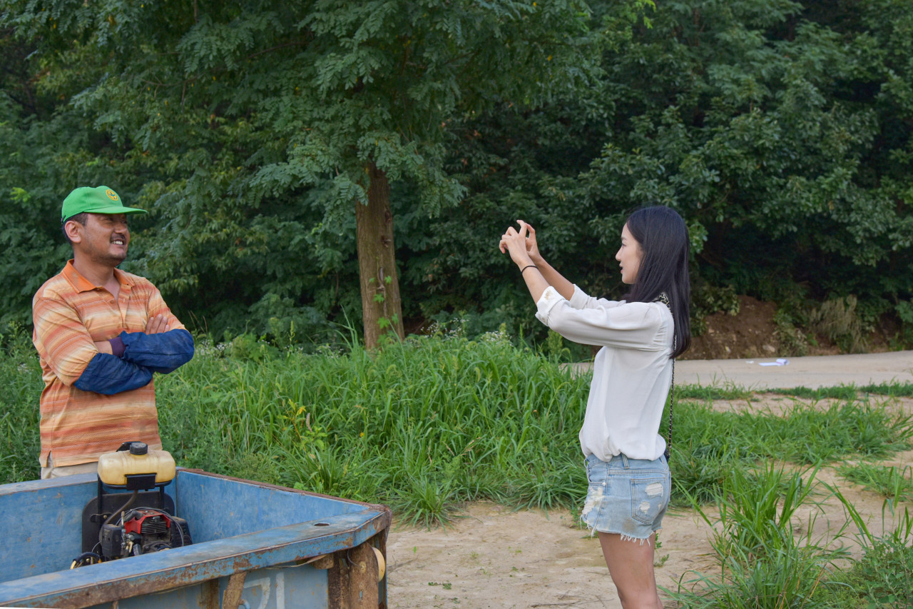 관객: 저는 첫 번째 에피소드랑 두 번째, 세 번째 에피소드가 느낌이 달랐어요. 심지어 장르도 다 다른 거 같다는 느낌을 받았거든요. 첫 번째는 ‘스릴러인가’하는 그런 느낌까지 받았었고 두 번째, 세 번째는 드라마 같았어요. 콘티의 느낌도 첫 번째는 비교적 빠르게 역동적으로 갔던 것 같고 경운기 아저씨나 차 딜러도 저는 되게 이상했거든요. 경운기 아저씨는 길도 넓은데 갑자기 받아 놓고 막 미안하다고 하고 갑자기 사진을 찍으라고 하고. 그리고 차 딜러는 갑자기 사진을 막 찍어대고 뭘 뿌려대고 해서, 전체적으로 스릴러적인 느낌을 많이 받았거든요. 그래서 첫 번째 에피소드의 장르를 스릴러로 의도하신 건지 궁금하고요. 그리고 테이크를 길게 가는 부분들이 굉장히 많더라고요. 두 번째 에피소드 시작할 때 운전하는 장면, 세 번째 에피소드에서 담배 나눠 피는 장면, 폐차하는 장면의 테이크를 굉장히 길게 가져가신 의도가 있으셨던 건지도 질문드리고 싶습니다. 마지막으로 배우분들 연기도 굉장히 좋았어요. 자연스러우면서도 호흡을 극적으로 잘 가져가시더라고요. 그런 부분들은 배우들한테 편하게 맡기신 건지 아니면, 현장에서 디렉팅을 하신 건지 궁금합니다.