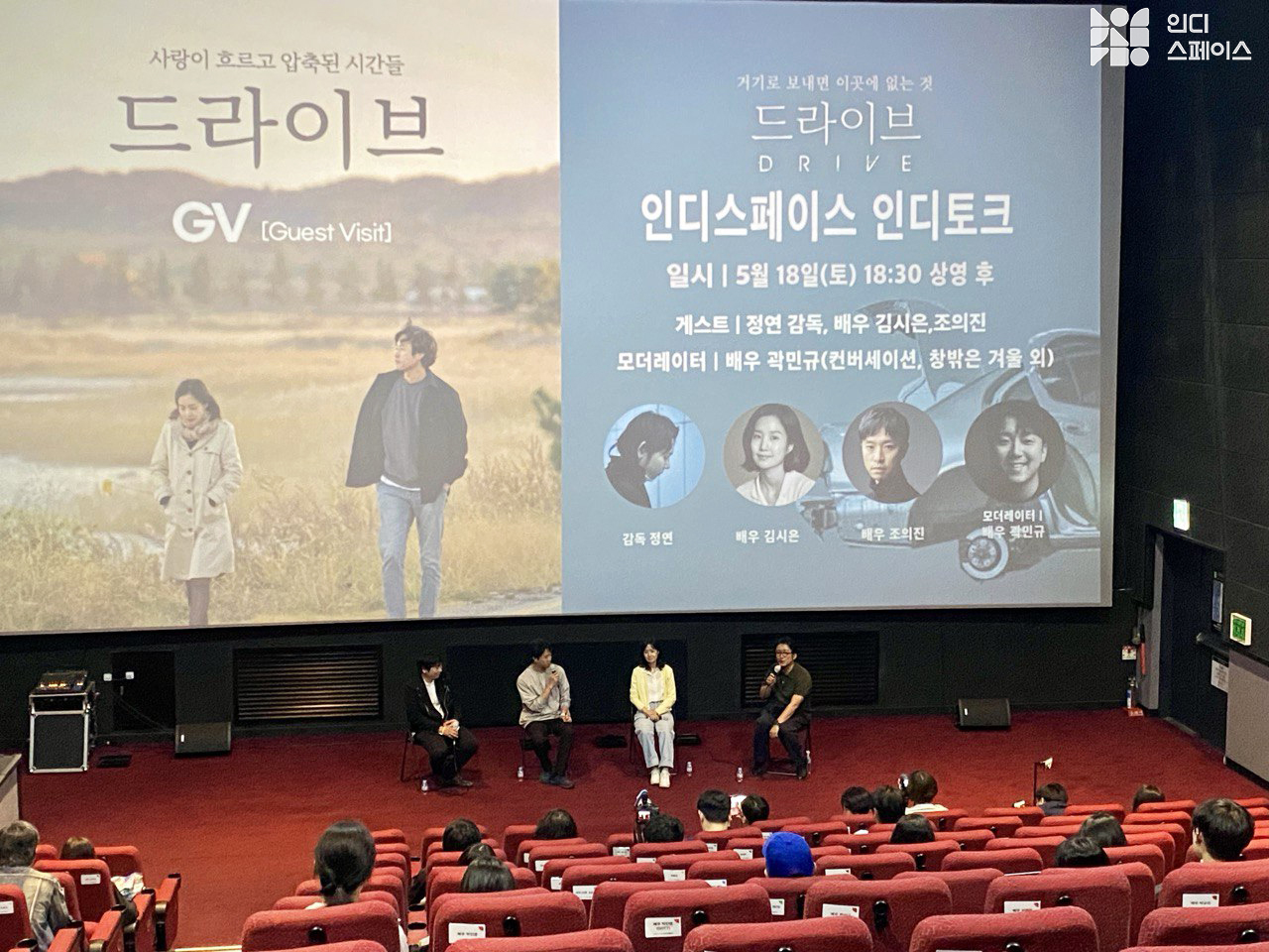 김시은: 저희 영화가 감독님께서 혼자 제작하시고 배급도 하시면서 어렵게 개봉까지 하게 됐는데요, 그래서 오늘 이 자리에서 만나게 된 관객분들께 너무 감사한 마음이에요. 영화를 감독님께서 완성됐다고 보내주셔서 링크로 집에서 봤을 때보다 이렇게 큰 화면에서 봤을 때가 확실히 다르더라고요. 그래서 나중에 또 이 영화가 다른 매체로 릴리즈가 되더라도 영화관에서 보는 〈드라이브〉의 감흥은 영화관에서만 온전히 느낄 수 있지 않을까, 그래서 영화관에서 만난 관객들이 너무 소중한 것 같아요. 오늘 와주셔서 너무 감사합니다.
