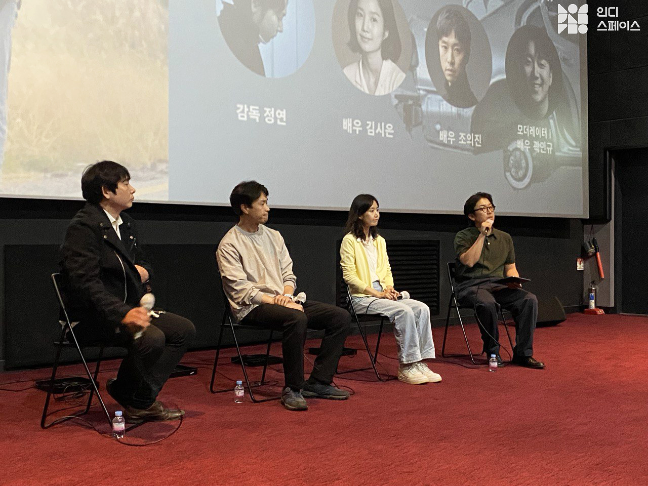정연: 정말 너무 기쁘고 감사한 마음으로 행복한 시절을 보내고 있습니다. 벌써 지금 개봉 5주 차를 향해 가고 있는데요, 관객들이 계속 찾아와주시고 또 이렇게 큰 극장에서 상영도 할 수 있어서 정말 감사해요. 아시는 분은 아시겠지만, 이 영화를 제가 각본도 쓰고 연출도 하고 배급도 하고 있거든요. 모든 일을 지금 제가 다 하고 있어서 개인적으로 정말 행복한 시간이 사라져가고 있는데, 제가 그것들을 즐긴다고 해야 하나, 누리지 못하는 게 아쉬운 거고요. 그런데도 10년의 기간 동안, 한 영화를 찍기 위해서 도와주신 배우와 스태프들, 가족들, 제 지인들 또 보이지 않는 곳에서 여러 가지로 저를 응원해 주시고 애써주신 분들과 상영까지 가능하게 해주신 분들까지… 감사하다는 말밖에 드릴 말씀이 없는 것 같습니다.