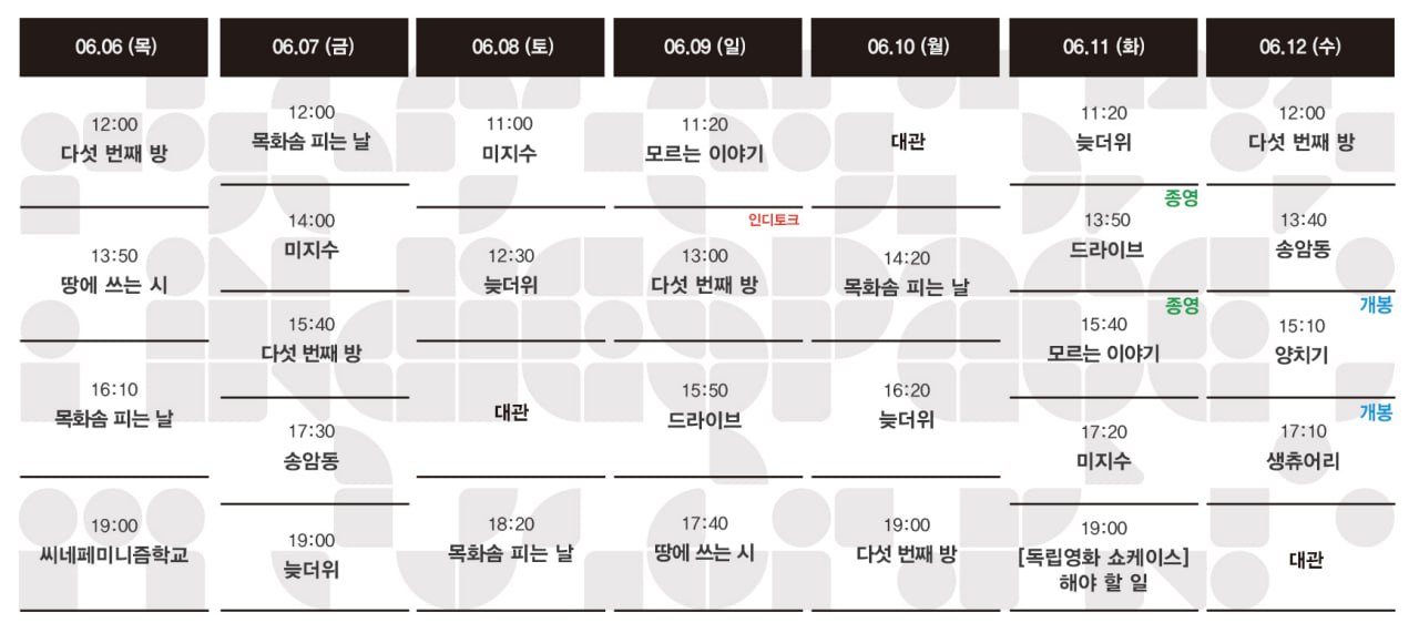 06.13-06.19 상영시간표 (0) | 2024.06.05 |