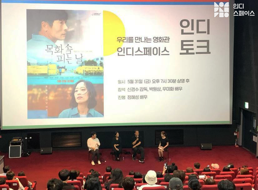 정혜성 배우(이하 정혜성): 안녕하세요, 오늘 〈목화솜 피는 날〉 다들 잘 보셨나요? 저는 오늘 모더레이터로 인디토크 참여하게 된 배우 정혜성 입니다. 본격적인 진행에 앞서서 신경수 감독님부터 관객분들께 간단한 자기소개 부탁드립니다.