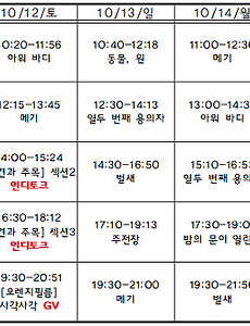 2019/10/044 [10.22] 독립영화 쇼케이스 <겨울밤에> 155회 독립영화 쇼케이스 일시 2019년 10월 22일(화) 오후 7시 30분관객과의 대화 참석 장우진 감독 | 진행 권은혜 평론가 관람 신청 https://tinyurl.com/y55qgfek 관람을 희망하시는 분은 위 링크에서 양식에 따라 작성 부탁드립니다.선착순 마감이며 조기 마감될 수 있습니다. 마감시 신청서 페이지가 닫힙니다. 2019. 10. 4. <열두 번째 용의자> 상영일정·인디토크 _11월 5일 종영 상영일정 10월 24일(목) 11:0010월 25일(금) 16:0010월 26일(토) 12:1510월 28일(월) 15:3010월 29일(화) 13:0011월 1일(금) 11:0011월 5일(화) 15:00 종영 예매하기 맥스무비 http://bit.ly/2vULqyh (좌석 선택 가능)예스24 http://bit.ly/an5zh9다음 http://bit.ly/2qtAcPS네이버 http://bit.ly/OVY1Mk 인디토크 인디토크● 일시: 2019년 10월 10일(목) 오후 7시 30분● 참석: 고명성 감독, '고상만의 수사반장' 고상만 INFORMATION 제목열두 번째 용의자(The 12th Suspect)감독/각본고명성출연김상경, 허성태, 박선영, 김동영 외제작/제공㈜영화사 진공동제작M&CF배급.. 2019. 10. 4. [10.10-10.16 상영시간표] 열두 번째 용의자 / 메기 / 아워 바디 / 동물, 원 / 벌새 / 불빛 아래서 / 밤의 문이 열린다 / 주전장 2019. 10. 4. [10.12] 오렌지필름 | 사각사각 오렌지필름 10월 | 사각사각일시 2019년 10월 12일(토) 오후 7시 30분상영작 GV 참석: 박준호 감독, 박혜진 배우, 신서영 감독, 정수지 배우 / 진행: 김호 감독관람료 9,000원 *참석자는 사정상 변경될 수 있습니다. 예매하기 맥스무비 http://bit.ly/2vULqyh (좌석 선택 가능)예스24 http://bit.ly/an5zh9다음 http://bit.ly/2qtAcPS네이버 http://bit.ly/OVY1Mk 박준호 | 2019 | 29분 | 극 연출 / 각본: 박준호프로듀서: 이혜인촬영: 한상길조명: 이광용동시녹음: 박종우미술: 이미지편집: 박준호음악: 이수빈믹싱: 김윤경색보정: 한상길출연: 김진이, 김미경, 김율호, 송지우 시놉시스북한 함흥 출신의 은서는 열일곱 살 때 혼.. 2019. 10. 4. 이전 1 다음