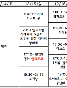 2019/12/053 <라스트 씬> 상영일정·인디토크 _1월 13일 종영 상영일정 1월 10일(금) 11:001월 13일(월) 14:40 종영 예매하기 맥스무비 http://bit.ly/2vULqyh (좌석 선택 가능)예스24 http://bit.ly/an5zh9다음 http://bit.ly/2qtAcPS네이버 http://bit.ly/OVY1Mk 인디토크 인디토크일시: 2019년 12월 12일(목) 오후 7시 30분참석: 박배일 감독, 정진아 국도예술관 프로그래머진행: 원승환 인디스페이스 관장 INFORMATION 제 목 | 라스트 씬 영 제 | Last Scene 감 독 | 박배일 장 르 | 다큐멘터리 기 획 / 제 작 | 오지필름, 국도예술관배 급 | ㈜시네마달러 닝 타 임 | 90분 등 급 | 등급분류 심사 진행 중 상 영 내 역 | 2018 제23회 부산국제영화제20.. 2019. 12. 5. [12.12-12.18 상영시간표] 라스트 씬 / 영화로운 나날 / 이태원 / 앵커 / 우리를 갈라놓는 것들 / 영하의 바람 / 메기 / 벌새 / 주전장 2019. 12. 5. [인디돌잔치] 2019년 12월 상영작을 선정해주세요 >> 투표하기 2019. 12. 5. 이전 1 다음