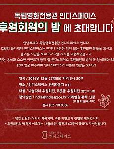 Community/알림395 [공지] 독립영화전용관 인디스페이스 관객기자단 인디즈 9기 모집 ▽ 인디즈 9기 지원서 다운로드 ▽ (press@indiespace.kr 로 접수) 2017. 7. 24. [인디돌잔치] 2017년 6월 상영작을 선정해주세요 인디스페이스가 관객 여러분과 함께 마련하는 값진 상영회!개봉 1주년을 맞이하는 작품 중 다시 보고 싶은 영화를 투표로 선정해주세요.지난해에 아쉽게 놓친 작품이 있다면, 혹은 스크린을 통해 꼭 한번 다시 보고 싶은 작품이 있다면주저 말고 투표해주세요:-) 자, 2017년 6월의 '인디돌잔치'의 영광은 어떤 작품에게 돌아갈까요? (두근두근) >> 투표하러 가기 (클릭!) 2017. 6. 1. 2015_인디스페이스_기부금 내역 2015년 독립영화전용관 인디스페이스 기부금 내역 안내 한 해 동안 독립영화전용관 인디스페이스를 후원해 주셔서 감사합니다. 2015년 기부금 내역입니다. 인디스페이스에 보내주신 후원금은 인디스페이스의 든든한 주춧돌이 될 것입니다. 앞으로도 독립영화전용관 인디스페이스에 많은 후원과 응원 부탁드립니다. 고맙습니다. (궁금한 사항은 문의 바랍니다. 02-6380-0366) 2017. 5. 24. [05.26-06.01] 인디포럼2017 제22회 인디포럼2017INDIEPENDENT FILM & VIDEO MAKERS' FORUM • 일시 2017년 5월 25일(목) ~ 6월 1일(목)• 주최주관 (사)인디포럼작가회의• 장소 시네마테크 서울아트시네마, 독립영화전용관 인디스페이스 인디포럼은 독립영화와 관객이 소통하고 즐길 수 있는 독립영화 축제임과 동시에독립영화 작가들의 커뮤니티로 인디포럼 영화제에서 작품을 상영한 작가들을구성원으로 하는 작가회의 행사를 주관합니다인디포럼은 작가들의 자율적 참여로 진행되는 비경쟁 영화제로관객들과 독립영화의 접촉면을 더욱 확장시키기 위해영화 문화의 다양성과 독립영화의 역할에 대한시의성 있는 고민과 토론장이 마련된 새로운 형식의 영화제입니다 2017. 5. 22. [인디돌잔치] 2017년 5월 상영작을 선정해주세요 인디스페이스가 관객 여러분과 함께 마련하는 값진 상영회!개봉 1주년을 맞이하는 작품 중 다시 보고 싶은 영화를 투표로 선정해주세요.지난해에 아쉽게 놓친 작품이 있다면, 혹은 스크린을 통해 꼭 한번 다시 보고 싶은 작품이 있다면주저 말고 투표해주세요:-) 자, 2017년 5월의 '인디돌잔치'의 영광은 어떤 작품에게 돌아갈까요? (두근두근) >> 투표하러 가기 (클릭!) 2017. 5. 4. 2016_인디스페이스_기부금 내역 2016년 독립영화전용관 인디스페이스 기부금 내역 안내 한 해 동안 독립영화전용관 인디스페이스를 후원해 주셔서 감사합니다. 2016년 기부금 내역입니다. 인디스페이스에 보내주신 후원금은 인디스페이스의 든든한 주춧돌이 될 것입니다. 앞으로도 독립영화전용관 인디스페이스에 많은 후원과 응원 부탁드립니다. 고맙습니다. (궁금한 사항은 문의 바랍니다. 02-6380-0366) 2017. 4. 7. [인디돌잔치] 2017년 4월 상영작을 선정해주세요 인디스페이스가 관객 여러분과 함께 마련하는 값진 상영회!개봉 1주년을 맞이하는 작품 중 다시 보고 싶은 영화를 투표로 선정해주세요.지난해에 아쉽게 놓친 작품이 있다면, 혹은 스크린을 통해 꼭 한번 다시 보고 싶은 작품이 있다면주저 말고 투표해주세요:-) 자, 2017년 4월의 '인디돌잔치'의 영광은 어떤 작품에게 돌아갈까요? (두근두근) >> 투표하러 가기 (클릭!) 2017. 4. 4. [인디돌잔치] 2017년 3월 상영작을 선정해주세요 인디스페이스가 관객 여러분과 함께 마련하는 값진 상영회!개봉 1주년을 맞이하는 작품 중 다시 보고 싶은 영화를 투표로 선정해주세요.지난해에 아쉽게 놓친 작품이 있다면, 혹은 스크린을 통해 꼭 한번 다시 보고 싶은 작품이 있다면주저 말고 투표해주세요:-) 자, 2017년 3월의 '인디돌잔치'의 영광은 어떤 작품에게 돌아갈까요? (두근두근) >> 투표하러 가기 (클릭!) 2017. 3. 2. [인디돌잔치] 2017년 2월 상영작을 선정해주세요 인디스페이스가 관객 여러분과 함께 마련하는 값진 상영회!개봉 1주년을 맞이하는 작품 중 다시 보고 싶은 영화를 투표로 선정해주세요.지난해에 아쉽게 놓친 작품이 있다면, 혹은 스크린을 통해 꼭 한번 다시 보고 싶은 작품이 있다면주저 말고 투표해주세요:-) 자, 2017년 2월의 '인디돌잔치'의 영광은 어떤 작품에게 돌아갈까요? (두근두근) >> 투표하러 가기 (클릭!) 2017. 1. 31. [모집] 독립영화전용관 인디스페이스 관객기자단 인디즈 8기 모집 ▽ 인디즈 8기 지원서 다운로드 ▽ (press@indiespace.kr 로 접수) 2017. 1. 19. [인디돌잔치] 2017년 1월 상영작을 선정해주세요 인디스페이스가 관객 여러분과 함께 마련하는 값진 상영회!개봉 1주년을 맞이하는 작품 중 다시 보고 싶은 영화를 투표로 선정해주세요.지난해에 아쉽게 놓친 작품이 있다면, 혹은 스크린을 통해 꼭 한번 다시 보고 싶은 작품이 있다면주저 말고 투표해주세요:-) 자, 2017년 1월의 '인디돌잔치'의 영광은 어떤 작품에게 돌아갈까요? (두근두근) >> 투표하러 가기 (클릭!) 2017. 1. 2. [12.27] 인디스페이스 후원회원의 밤에 초대합니다 2016. 12. 16. 이전 1 ··· 14 15 16 17 18 19 20 ··· 33 다음