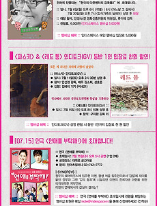 Now Playing/작품별 상영일정919 <성실한 나라의 앨리스> 이벤트 & 상영일정 8월 14일 (금) 12:50 개봉, 16:30, 20:00 8월 28일(금) 14:108월 29일(토) 18:008월 30일(일) 12:108월 31일(월) 10:309월 1일(화) 18:009월 2일(수) 16:109월 4일(금) 12:209월 6일(일) 18:109월 7일(월) 10:309월 7일(화) 14:10 이후 상영일정은 추후 공개됩니다. 예매하기 (실시간 예매 가능) ● 맥스무비 http://bit.ly/9BCgci● 예스이십사 http://bit.ly/an5zh9● 네이버 http://bit.ly/OVY1Mk● 다음 http://bit.ly/1srfYBx :: 개봉 이벤트 :: 매 상영 선착순 다섯 명의 관객 분들께는 '타투 스티커'를 드립니다. ● 기간: 8월 14일(금) - 소진시까지.. 2015. 8. 10. <위로공단> 상영일정 & 인디토크(GV) 8월 14일 (금) 11:00 개봉, 14:40, 18:10 10월 11일(일) 12:2010월 12일(월) 16:1010월 17일(토) 14:2010월 18일(일) 12:2010월 20일(화) 16:40 종영 이후 상영일정은 추후 공개됩니다. 예매하기 (실시간 예매 가능) ● 맥스무비 http://bit.ly/9BCgci● 예스이십사 http://bit.ly/an5zh9● 네이버 http://bit.ly/OVY1Mk● 다음 http://bit.ly/1srfYBx :: 인디토크 (GV) :: ● 일시: 9월 9일(수) 오후 8시 상영 후● 참석: 임흥순 감독, 소규모 아카시아 밴드 송은지 ---------------------------------------------------------- ● 일시: .. 2015. 8. 10. [초대이벤트] 극단 차이무 연극 <거기> ::연극 초대 이벤트:: 공감가는 정서가 흐르는 허름한 술집, 구수한 사투리 속에 담긴 각자의 인생 이야기, 환상의 앙상블을 뽐내는 배우들의 노련한 연기, 그리고 그들의 이야기를 몰입하여 들어주는 관객까지. 연극이 줄 수 있는 거의 모든 즐거움을 한꺼번에 안겨주었던 . 그 가 돌아옵니다. 페이스북 댓글로 연극 의 기대평을 남겨주세요. 응모하기 >> http://on.fb.me/1P5CeuC추첨을 통해 다섯 분께 관람의 기회를 드립니다. 초대일시: 8월 26일 (수) 오후 8시초대장소: 아르코예술극장 소극장초대인원: 5명 (1인 2매) 이벤트 기간: ~ 8월 20일 (목)당첨자 발표: 8월 21일 (금) 개별연락(당첨되신 분께서는 공연 당일 연극 매표소에서 본인 확인 후 티켓 받으시면 됩니다.) * 특별할.. 2015. 8. 5. [이벤트] <오늘영화> x 뮤지컬 <내 아내에게 애인이 있다> 초대 이벤트 :: x 뮤지컬 초대 이벤트:: 뮤지컬 는 성공만을 쫓는 한 중년의 남자가 아내의 몸으로 빙의 되면서 극이 시작됩니다. 남자는 자신과 가장 친한 친구와 아내의 외도 사실을 알게 되고, 아내를 사이에 두고 벌어지는 해프닝을 유쾌하게 담고 있으며 “남자들의 사회적 성공지향적인 생활에 아내는 고립당하고, 소외당하고 상처 받는 아내에 대한 남편들의 끊임없는 관심과 배려 없이는 사랑이 성립 될 수 없다.” 라는 주제를 명쾌하게 제시해요. 뮤지컬 자세히 보기 >> http://www.cheating.co.kr 8월 20일 개봉하는 영화 는 윤성호, 강경태, 구교환, 이옥섭 감독의 기발함이 담긴 로맨스입니다. 매년 서울독립영화제에서 진행하는 인디 트라이앵글 프로젝트를 통해 제작된 영화로 2014년 서울독립영화제 개막.. 2015. 8. 4. 8월의 [인디돌잔치] 당신의 선택은? 인디스페이스가 관객 여러분과 함께 마련하는 깜짝 선물.개봉 1주년이 되는 작품들 중 함께 보고 싶은 영화, 다시 보고 싶은 영화를 관객 여러분이 투표로 선정해주세요.아쉽게도 보지 못한 작품들이 있었다면, 혹은 스크린을 통해 꼭 한번 다시 보고 싶은 작품이 있다면, 주저말고 투표에 참여하세요!자, 8월의 '두근두근 인디돌잔치'의 영광은 어떤 작품에게 돌아갈까요? >>투표하러 가기>> ● 투표기간: 8월 3일(월)~ 16일(일)● 발표: 8월 17일(월)● 상영일: 8월 25일(화) 저녁 7시 30분 (입장료: 6,000원 / 인디스페이스 멤버십, 후원회원 무료) + 투표에 참여해주신 분들 중 5분(1인2매)을 선정하여 초대합니다. 2015. 8. 2. [초대이벤트] <서울국제뉴미디어페스티벌>에 초대합니다! 국내 유일의 영화와 미술전시를 아우르는 탈장르 뉴미디어아트 영상축제 '제15회 서울국제뉴미디어페스티벌(이하 네마프2015)'이 8월 6일부터 14일까지 개최됩니다.'낯설고 설레는 인간'이라는 슬로건으로 현대인들이 잊고 살았던 낯설음과 설레임이 우리 삶에 얼마나 소중한 것인지 영화와 전시작품들로 다양하게 풀어낸 이번 축제에 인디스페이스 관객 여러분을 초대합니다. 8월 7일(금)부터 13일(목)까지 인디스페이스에서도 만나볼 수 있는 '네마프2015'올해의 축제에서 가장 기대되는 작품을 그 이유와 함께 페이스북 댓글로 달아주세요! 추첨을 통해 초대권(1인 2매)을 드립니다 :D ☞ 이벤트 참여하기 ☜ ☞ 상영작 둘러보기 ☜ ● 기간: 8월 1일(토) - 8월 5일(수) 오후 5시 마감● 당첨자 발표: 8월 5.. 2015. 8. 1. <살인재능> 상영일정 & 인디토크(GV) 7월 30일 (목) 14:20 개봉7월 30일 (목) 20:00 GV 7월 31일 (금) 15:008월 1일 (토) 20:008월 2일 (일) 12:30, 18:008월 3일 (월) 14:108월 4일 (화) 14:20, 20:008월 5일 (수) 14:20, 20:008월 6일 (목) 12:30, 18:108월 18일 (화) 17:50 이후 상영일정은 추후 공개됩니다. 예매 안내 (실시간 예매 가능) ● 맥스무비 http://bit.ly/9BCgci● 예스이십사 http://bit.ly/an5zh9● 네이버 http://bit.ly/OVY1Mk● 다음 http://bit.ly/1srfYBx :: 인디토크 (GV) :: 인디토크● 일시: 7월 30일(목) 오후 8시● 참석: 전재홍 감독, 김범준 배우● .. 2015. 7. 20. [08.01] 8월의 독립영화 보는 날 ★ 8월 1일 독립영화 