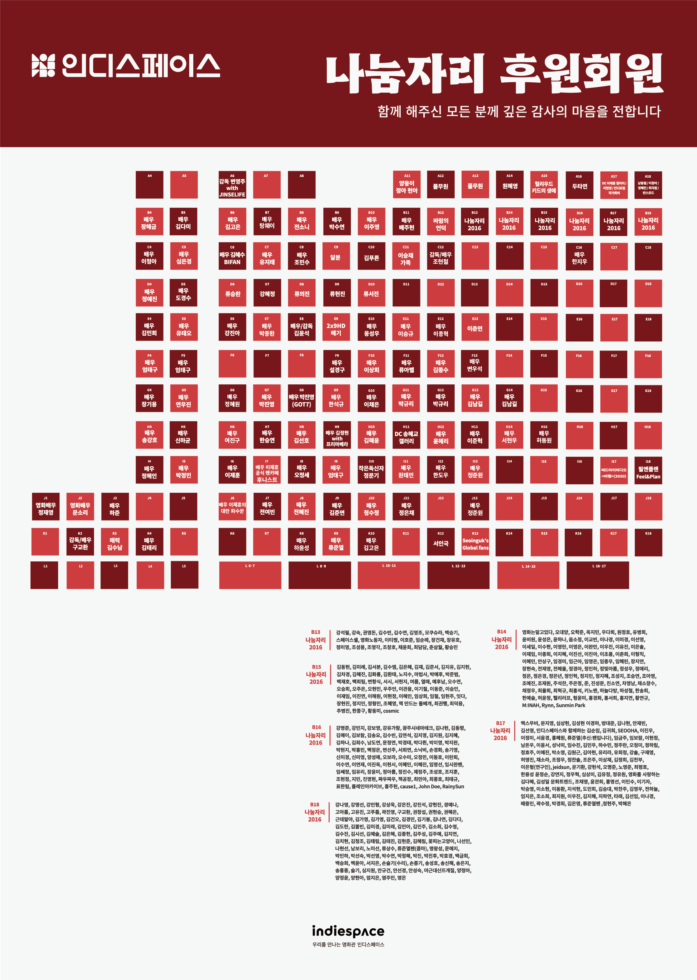 인디스페이스를 후원해주신 인디스페이스 나눔자리 후원회원 분들의 이름입니다.