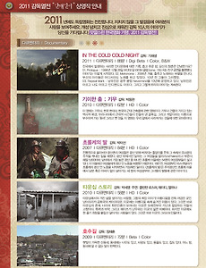 감독열전15 2011 감독열전 : 10편의 따끈따끈한 독립영화를 만나세요. [2011 감독열전] 산해진미, 맛깔스런 한국영화기행 2011 감독열전 대전아트시네마 상영안내 기간: 4월 7일(목) ~ 4월 13일(수) 장소: 대전아트시네마 2011 감독열전 대구 동성아트홀 상영안내 기간: 4월 7일(목) ~ 4월 20일(수) 장소: 대구동성아트홀 [2011 감독열전]에서 극영화 5편, 다큐멘터리 5편 등 총 10편의 따끈따끈한 독립장편영화를 만나보세요! 서울 상영에 이어 부산, 대구, 대전, 인천, 광주, 전주 등 지역 순회 상영이 진행됩니다. ○ 상영시간표 보기 ○ 공식 블로그 바로가기 ○ 상영 영화에 대한 정보는 아래 이미지를 참고해 주세요. 2011. 3. 23. [키노아이 감독熱전] 트레일러 공개_9편의 영화를 미리 엿보자! 키노아이 감독熱전의 아홉 편의 작품들이 어떤 영화들인지 궁금하시죠? ^^ 아직 못보셨다면 감독열전의 트레일러를 먼저 감상하고, 내 취향에 맞는, 꼭 보고 싶은 영화를 먼저 챙겨 보는 건 어떨까요? 가장 호감가는 영화의 투표(현장에서만 가능!)를 하시면 추첨을 통해 선물도 드립니다~ ^^ 그렇다면, 두둥! 트레일러를 감상해볼까요?? 2009. 7. 29. [키노아이 감독熱전] 특별한 이벤트가 시작된다! 키노아이 감독열전이 벌써 6일차로 접어들었습니다! 9편의 영화가 매일매일 관객여러분과의 만남을 고대하여 기다리고 있습니다. 그래서 준비한 특별한 이벤트! 하나! 키노아이 감독열전의 티켓을 모아오세요! 각기 다른 영화의 티켓 세 장을 모아오시면 DVD 혹은 책을 선물로 드립니다. 두울! 키노아이 감독熱전을 더욱 저렴하게 감상하실 수 있다는 거 알고 계시나요? 키노아이 패키지 티켓(10장)을 구입하시면 DVD 혹은 책을 선물로 드립니다. 영화도 남들보다 알뜰하게 보고, 선물의 행운까지 가져가세요! ※ 기간은 상품 소진 시 까지! 서두르세요~♡ 이런 선물을 드린답니다! 작년 인디스페이스의 화제의 개봉작 [슬리핑 뷰티], [가벼운 잠], [하늘을 걷는 소년] DVD 김명주 작가의 서정적 소설 [여름과 가울 사이.. 2009. 7. 28. [키노아이 감독熱전] 감독과의 대화(GV) 안내 키노아이 감독熱전! 아홉 명의 감독, 아홉 편의 작품, 아홉 개의 각기 다른 재미를 느낄 수 있는 키노아이 감독열전이 인디스페이스에서 열리고 있습니다. 주말에는 감독과의 대화의 특별한 만남도 기다리고 있답니다! 영화도 보고, 감독과 이야기도 나누고, 감독열전이 준비한 특별한 선물까지 인디스페이스에서 이 모든 혜택을 맛보세요! 감독과의 대화 (GV) 7월 25일 4:00pm 딱정벌레 (감독 김은희) 7월 26일 4:00pm 보통소년 (감독 박성훈) 7월 31일 8:30pm 낯선 곳 낯선 시간 (감독 김영혜) 8월 1일 2:30pm 말보로 전쟁 (감독 명중오) 6:00pm 삼거리 무스탕 소년의 최후 (감독 남기웅) 8월 2일 4:30pm 세리와 하르 (감독 장수영) 2009. 7. 24. INDIESPACE on PAPer 21_200907_반두비&키노아이 감독熱전 INDIESPACE on PAPer 21_200907 Contents Editorial 현장스케치 01_중국독립영화특별전:중국 사실주의 영화의 최전선, 장밍 감독을 만나다 02_매삼화 with 퀴어문화축제+연분홍치마 [레즈비언 정치 도전기] 03_독립장편영화쇼케이스 [청계천의 개] Editor's Choice 독립영화 속 내가 꼽은 한 컷: 처음 만난 사람들, 반두비, 다른 반쪽, 빙아이 Now on INDIESPACE [반두비] 작품정보 & 리뷰 신동일 감독 인터뷰 키노아이 감독열전 작품정보 아메리칸 좀비, 세리와 하르 리뷰 & 키노아이 김명은 대표 인터뷰 제4회 이주노동자영화제 영화제 정보 & 활동가 인터뷰 인디스페이스 정기상영회: 독립영화와 친구들 인디아카이브 안내 인디아카이브 안내 & [송환] 다.. 2009. 7. 20. 제1회 키노아이 감독열전(7.23-8.5)_상영시간표 공개! 제1회 키노아이 감독熱전_7.23-7.29 7/23 (목) 7/24 (금) 7/25 (토) 7/26 (일) 7/27 (월) 7/28 (화) 7/29 (수) 10:30 낯선 곳, 낯선 시간 아메리칸 좀비 세리와 하르 말보로 전쟁 딱정벌레 삼거리 무스탕 소년의 최후 보통소년 12:30 딱정벌레 낯선 곳, 낯선 시간 아메리칸 좀비 삼거리 무스탕 소년의 최후 보통소년 딱정벌레 아메리칸 좀비 14:30 보통소년 딱정벌레 낯선 곳, 낯선 시간 푸른강은 흘러라 말보로 전쟁 보통소년 낯선 곳, 낯선 시간 16:30 말보로 전쟁 보통소년 16:00 딱정벌레 GV 16:00 보통소년 GV 삼거리 무스탕 소년의 최후 말보로 전쟁 딱정벌레 18:30 삼거리 무스탕 소년의 최후 말보로 전쟁 사람을 찾습니다 아메리칸 좀비 세리와.. 2009. 7. 20. [제1회 키노아이 감독熱(열)전] 대한민국의 대표 독립감독들을 소개합니다 제1회 키노아이 감독熱(열)전 대한민국의 대표 독립감독들을 소개합니다. 패기와 열정으로 뭉친 9인의 독립영화 감독들! 각양각색, 기상천외한 그들의 이야기를 만난다!! 대한민국을 대표하는 열정 가득한 독립 영화 감독들을 한자리에 모으는 특별한 기획전이 오는 7월 23일 개최된다. 제 1회 키노아이 감독熱전이 그것. 7월 23일부터 8월 5일까지 ‘인디스페이스’를 통해 상영되는 이번 기획전은, 독립영화에 대한 관객들의 보다 뜨거운 관심을 불러일으킬 수 있을 것 이라는 점에서 더욱 큰 관심을 모으고 있다. 특히 독립영화가 한국 영화시장 속에서 그 어느 때 보다 많은 주목을 이끌고 있는 분위기 속에,독립영화계의 숨은 주역으로 활동 